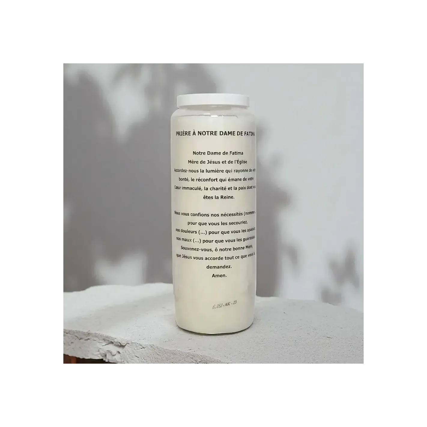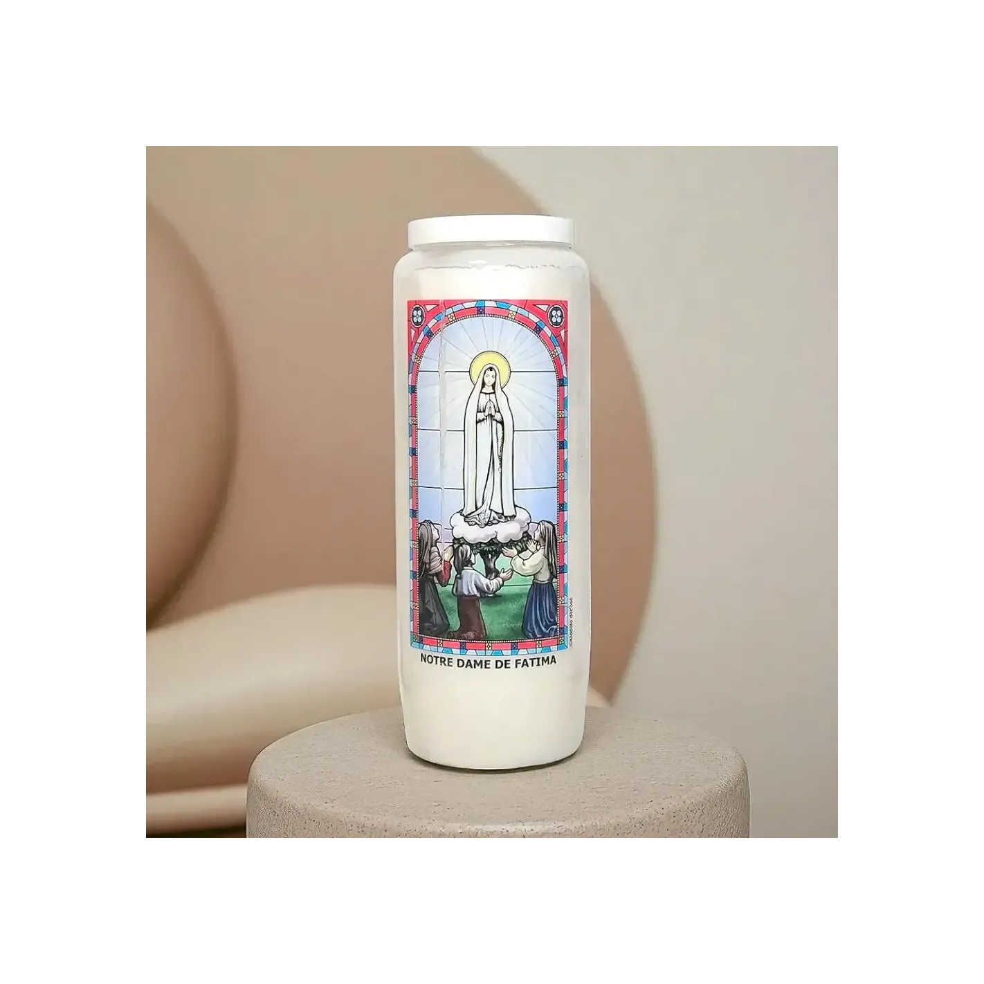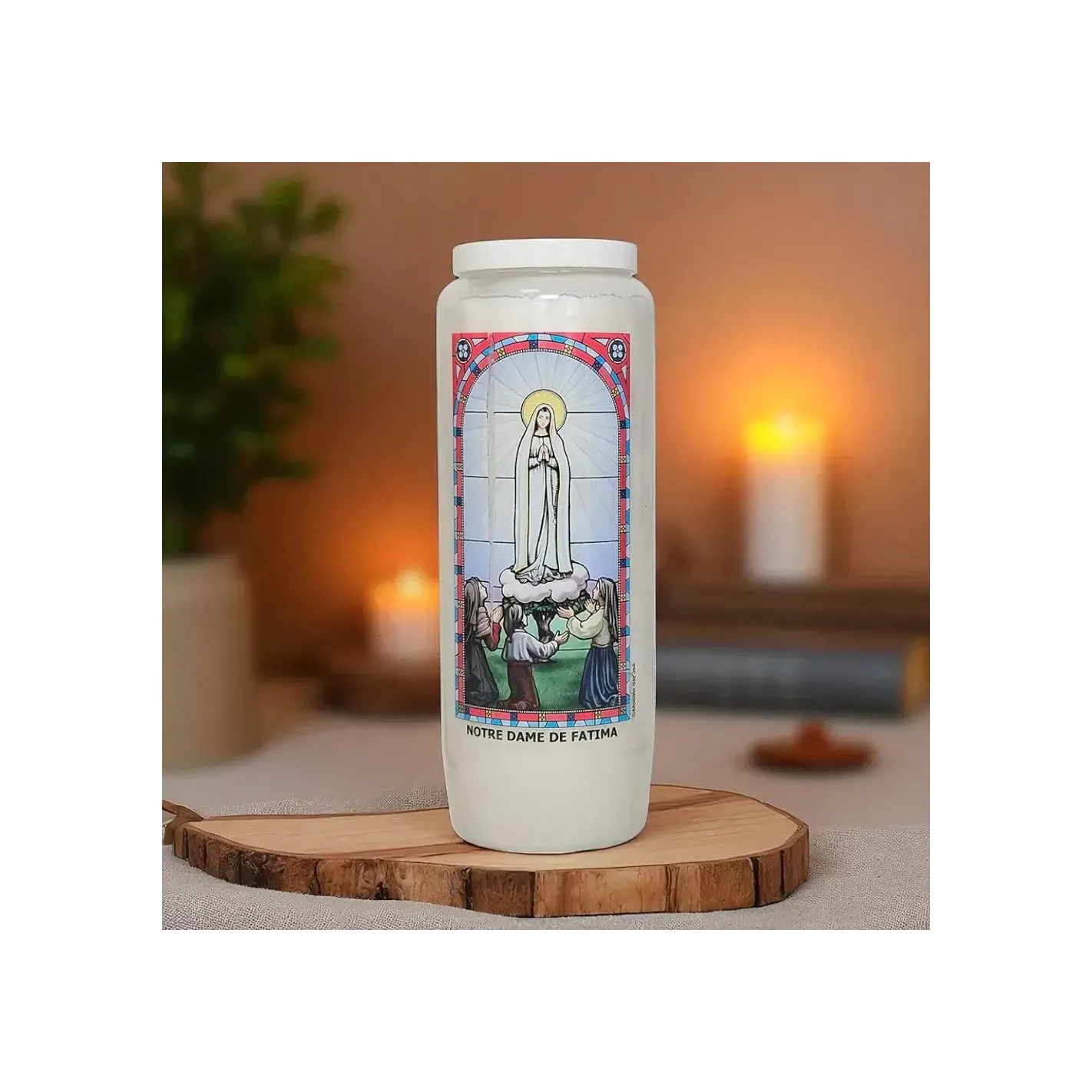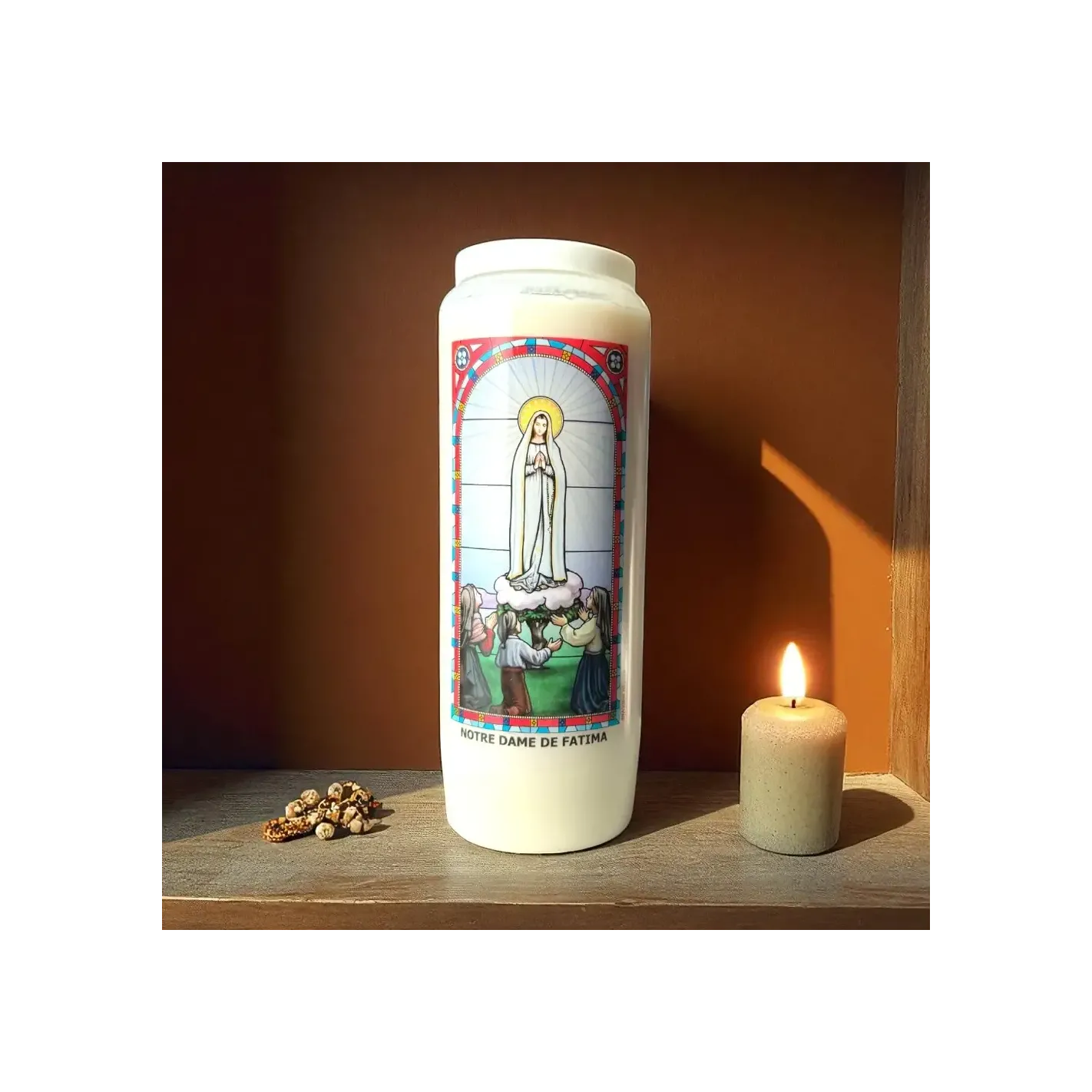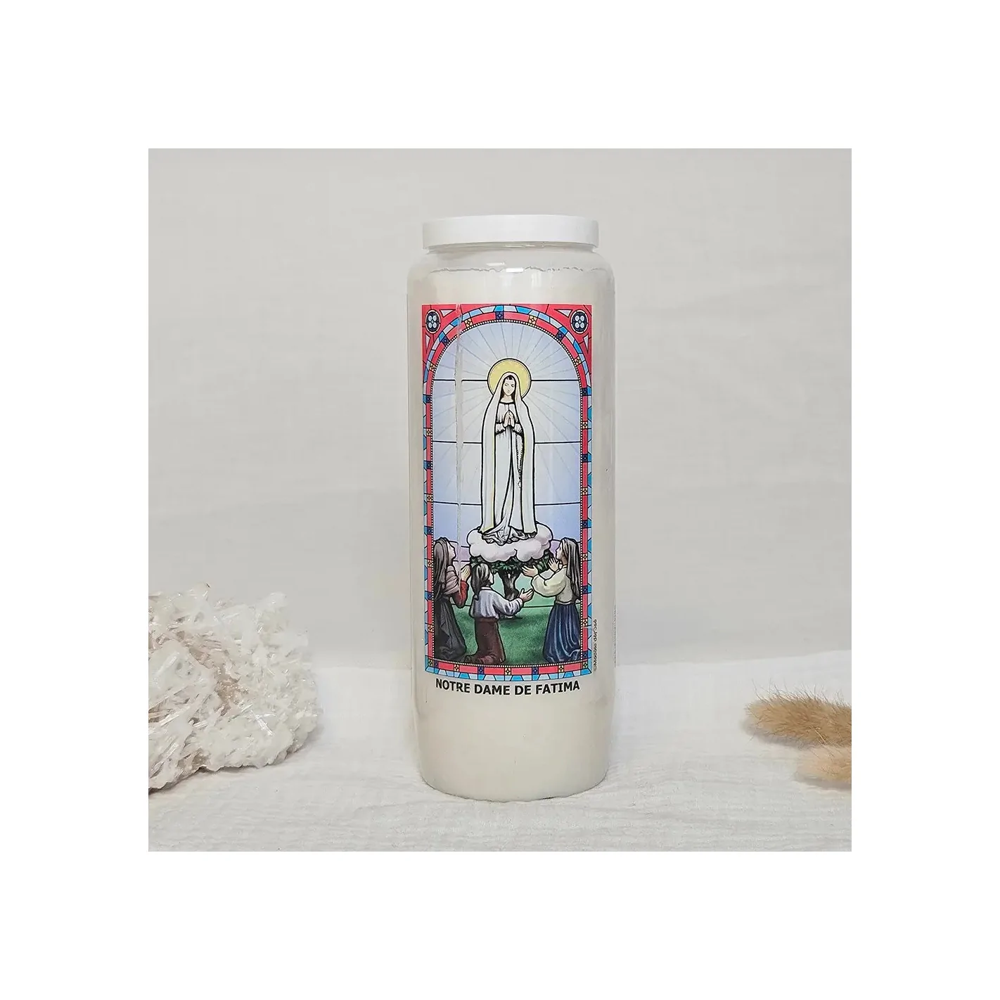 - Format : Bougie de 17,5 cm avec image de Notre-Dame de Fatima
