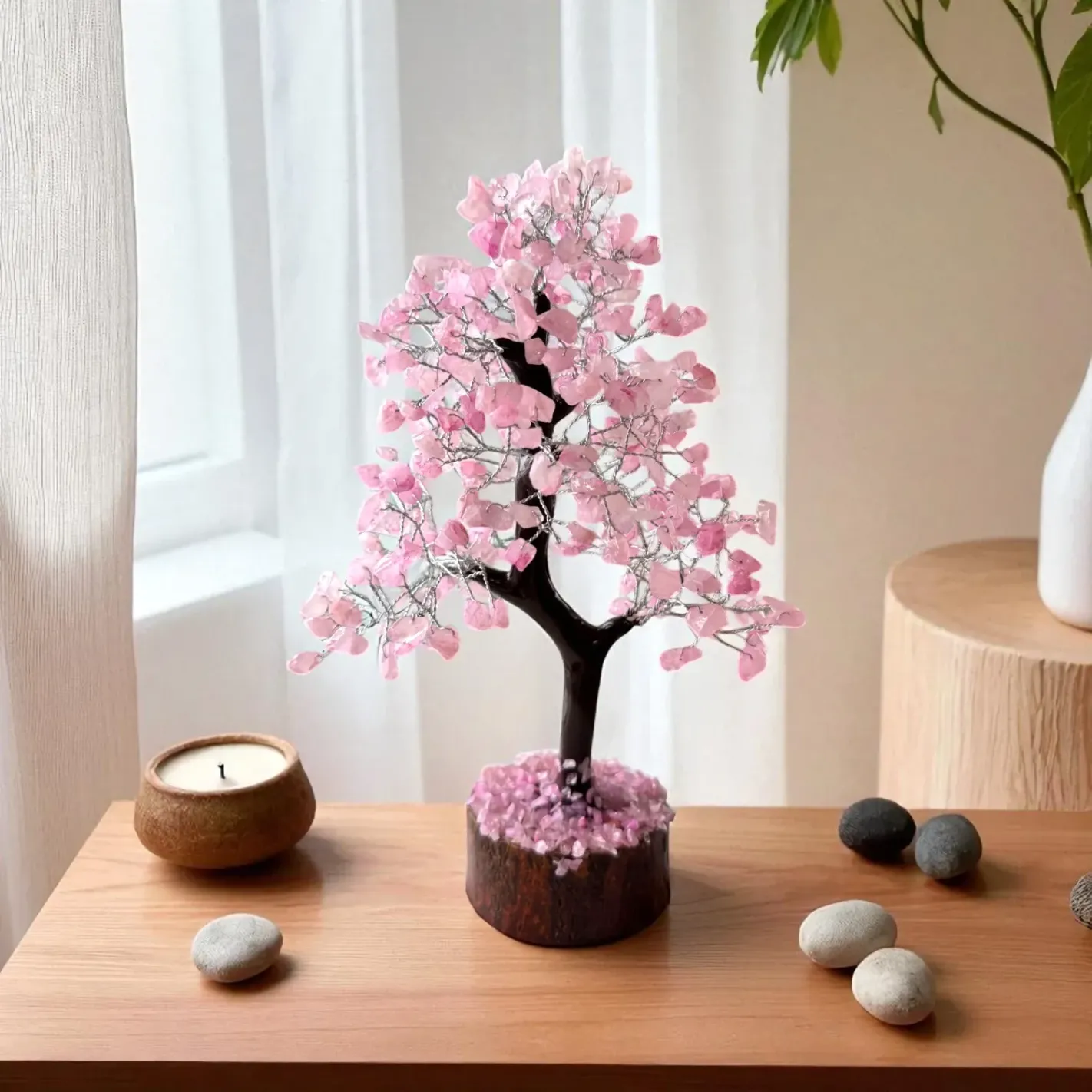 Ouvrez un espace de douceur et d’amour avec l’ Arbre du Bonheur Quartz Rose – un symbole sacré pour nourrir le cœur et harmoniser l’émotionnel.