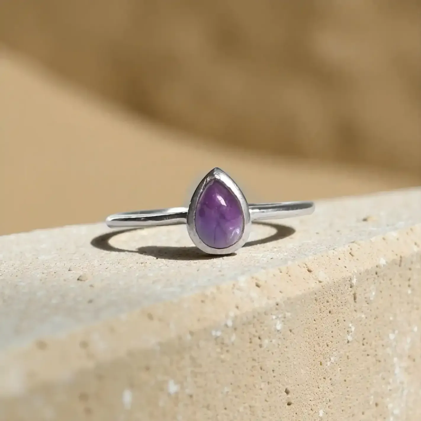 Bague Amélie Améthyste en argent très fin avec améthyste en forme de goutte (5 mm). Un bijou délicat, empreint de calme et de lumière intérieure.