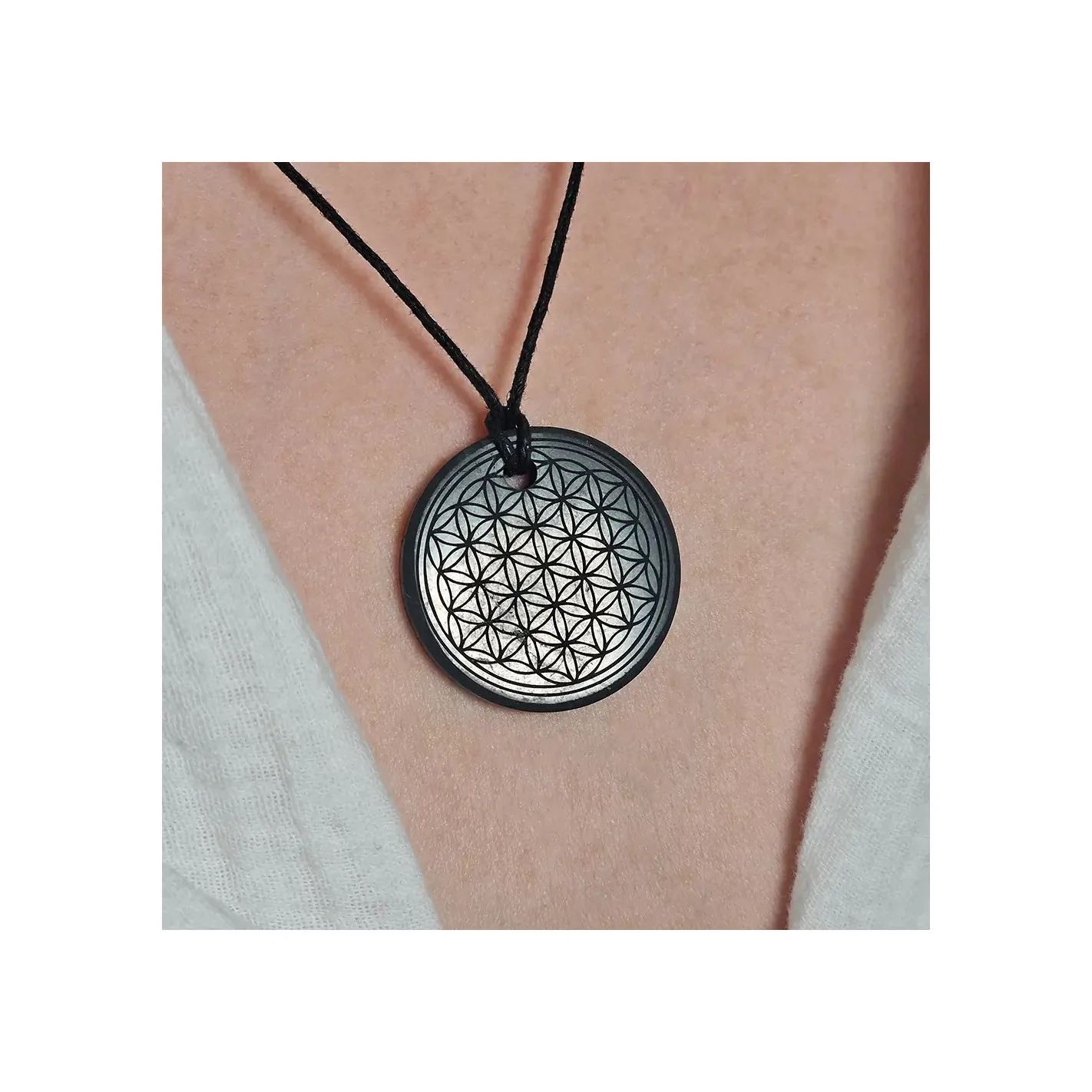 Le pendentif Fleur de Vie en shungite est un puissant talisman spirituel, associant la force protectrice de la pierre à l’harmonie vibratoire de la géométrie sacrée.