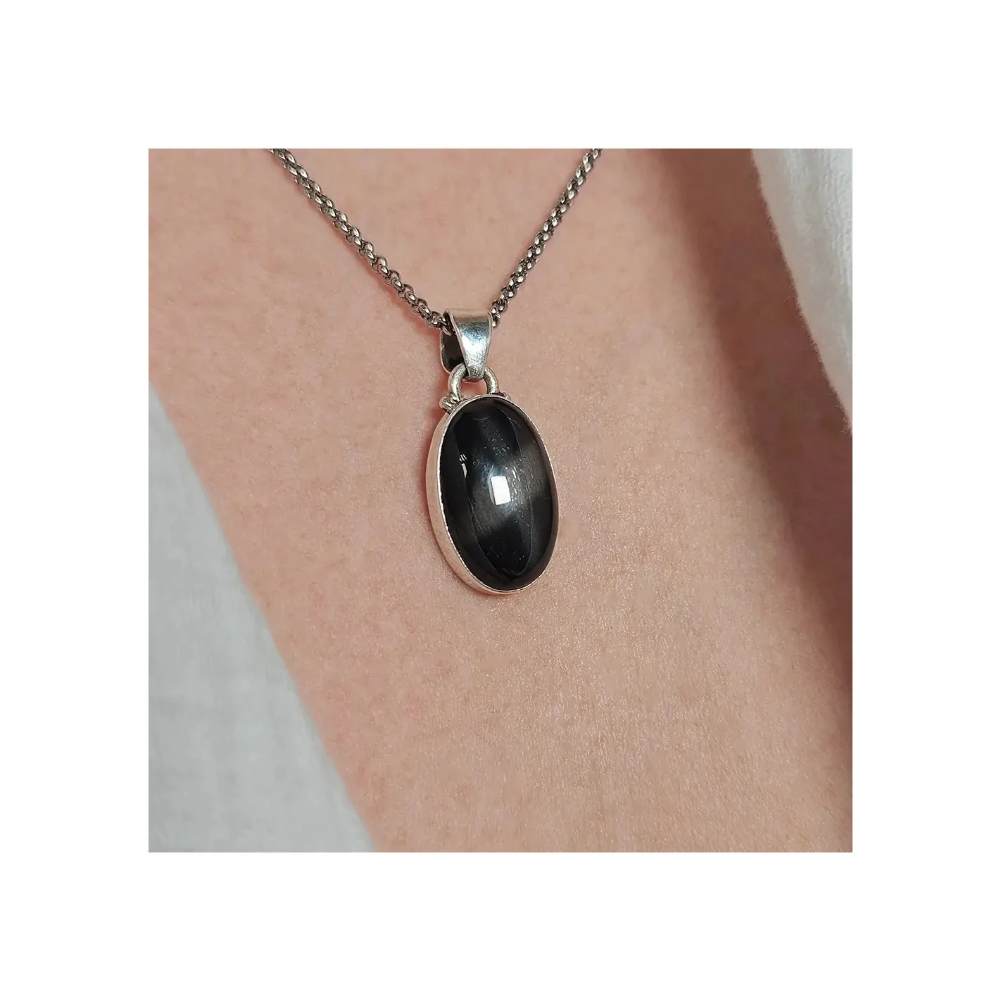 Le design du support en argent est finement travaillé pour compléter et mettre en valeur la beauté naturelle du diopside étoilé. Ce pendentif élégant est parfait pour être porté avec des tenues décontractées ou formelles, ajoutant une touche de sophistication et de mystère à n'importe quel look.Un Cadeau Idéal