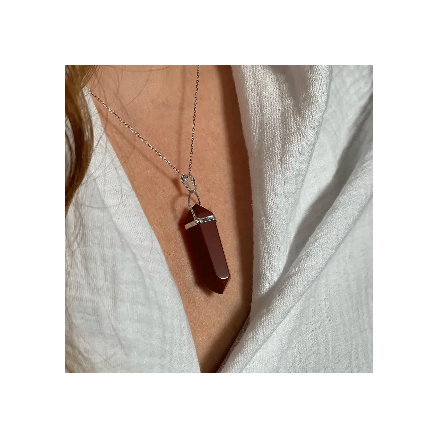 Pendentif en Jaspe Rouge Pointe – Énergie d’Ancrage et de Vitalité