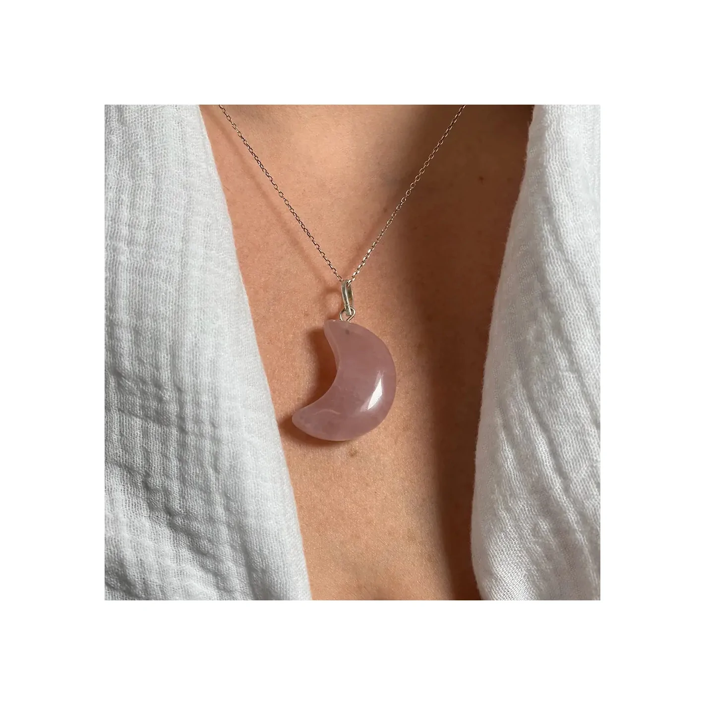 Pendentif Lune en Quartz Rose – Symbole de Douceur et d’Amour Universel
