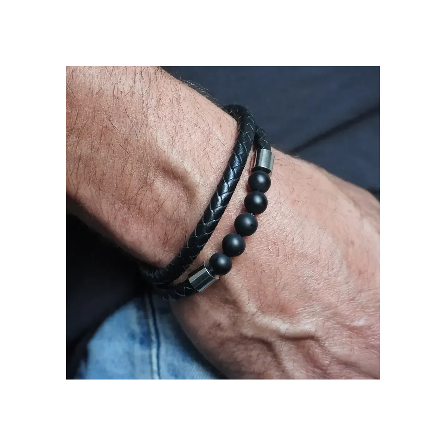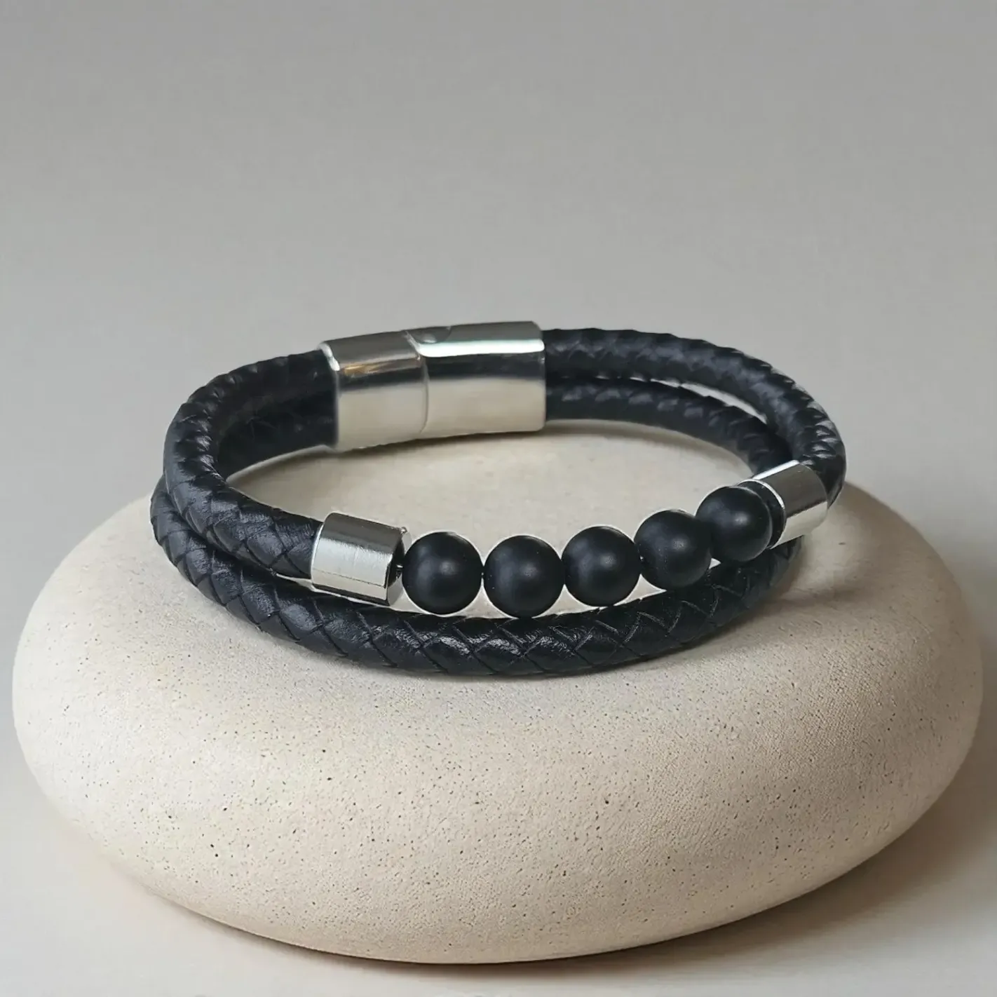 Bracelet en Cuir et Onyx pour Homme – Symbole de Force et de Protection