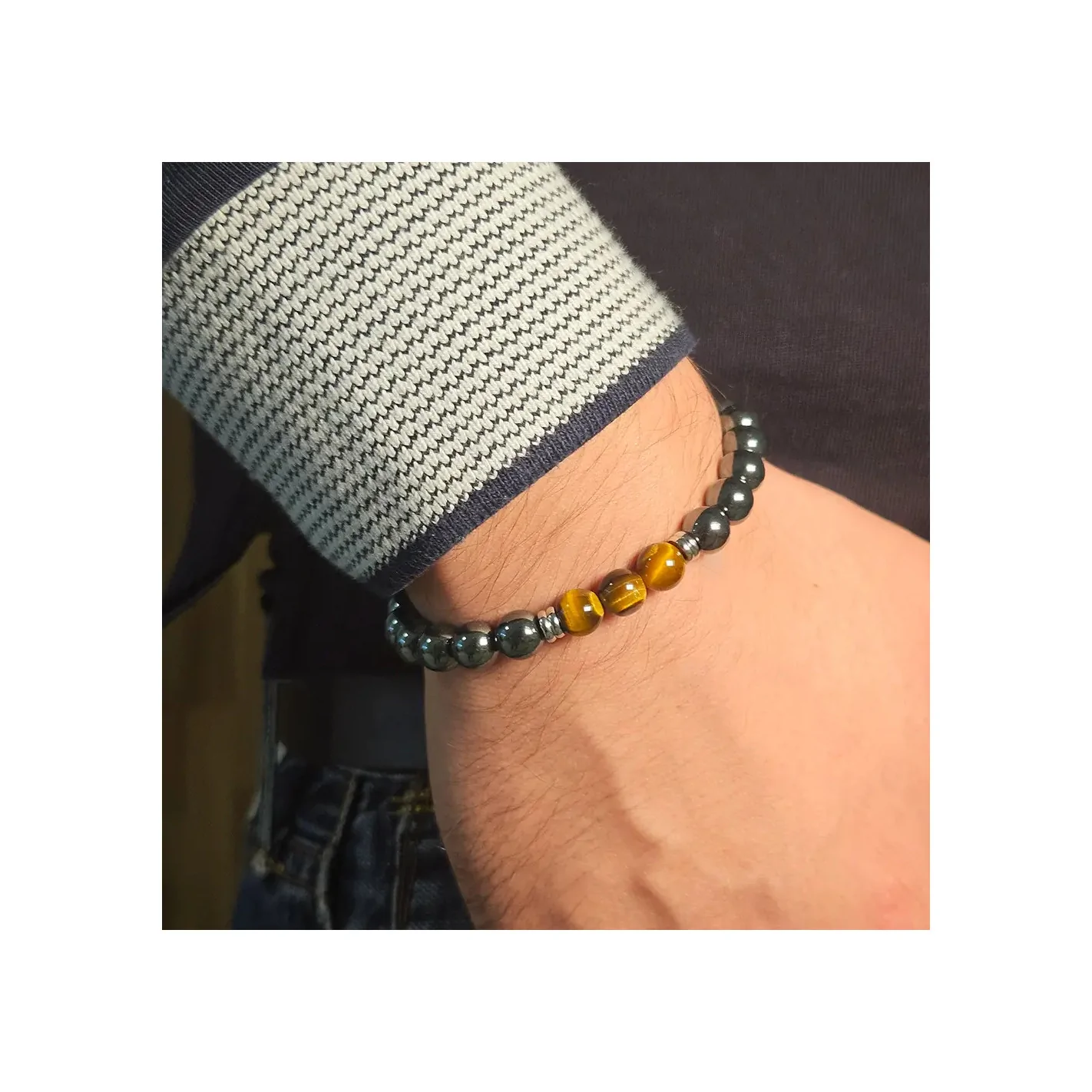 Bracelet en Hématite et Oeil de Tigre – Élégance et Symbolisme