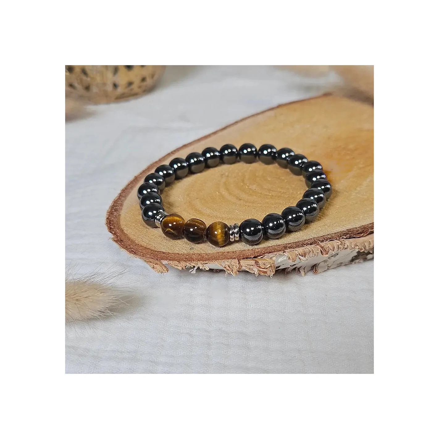 Le bracelet en Hématite et Oeil de Tigre incarne la force maîtrisée. Il équilibre énergie et lucidité, tout en protégeant et ancrant solidement dans le réel.