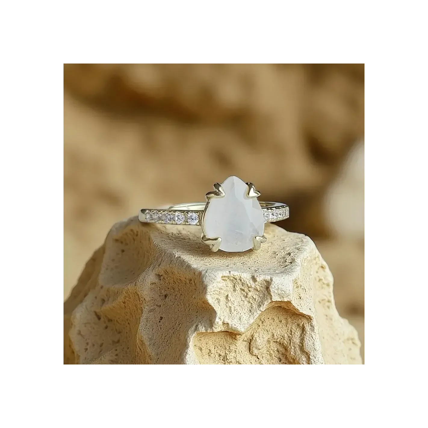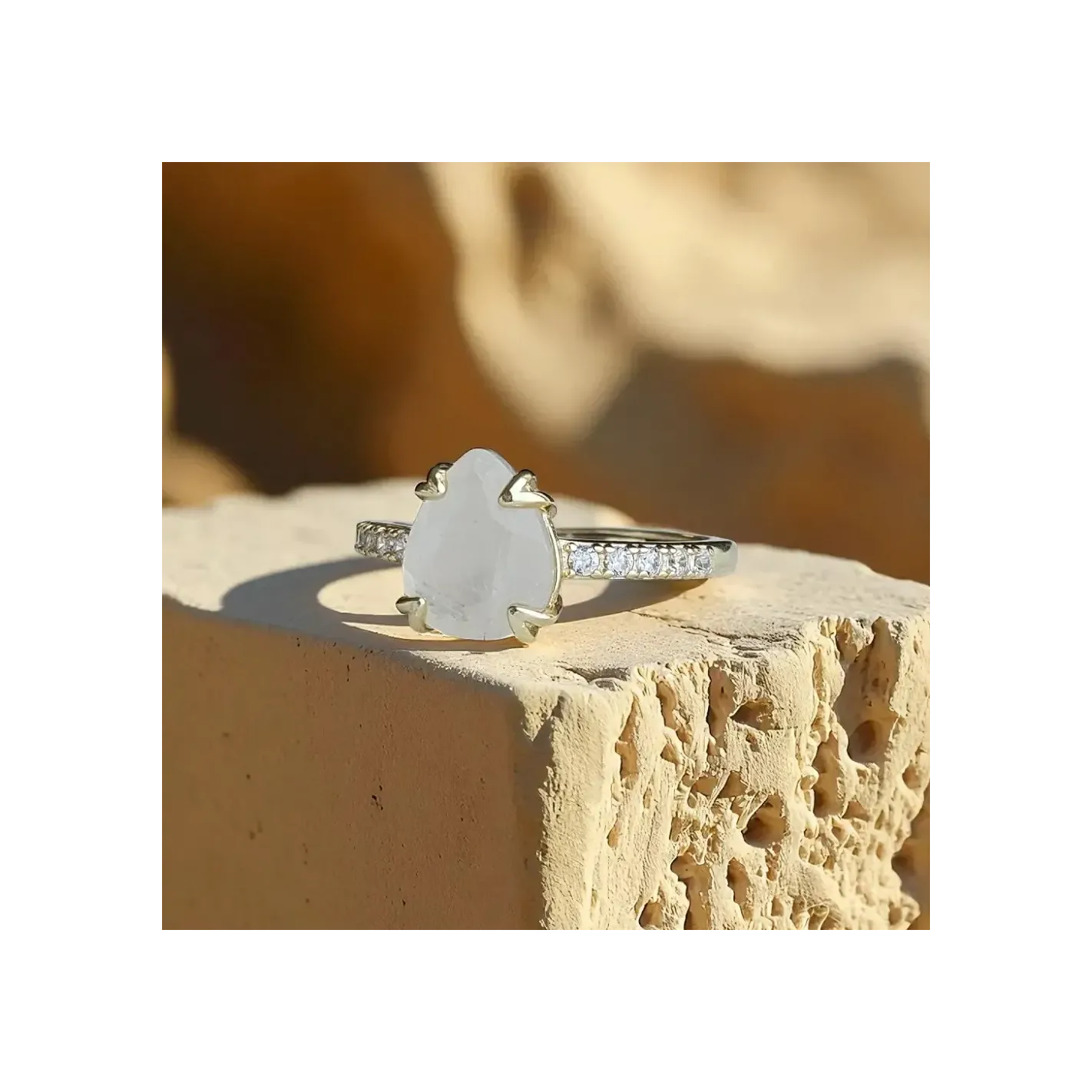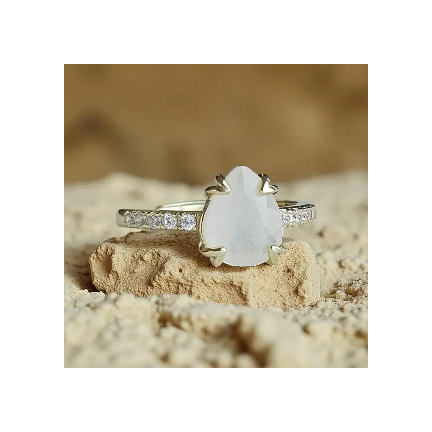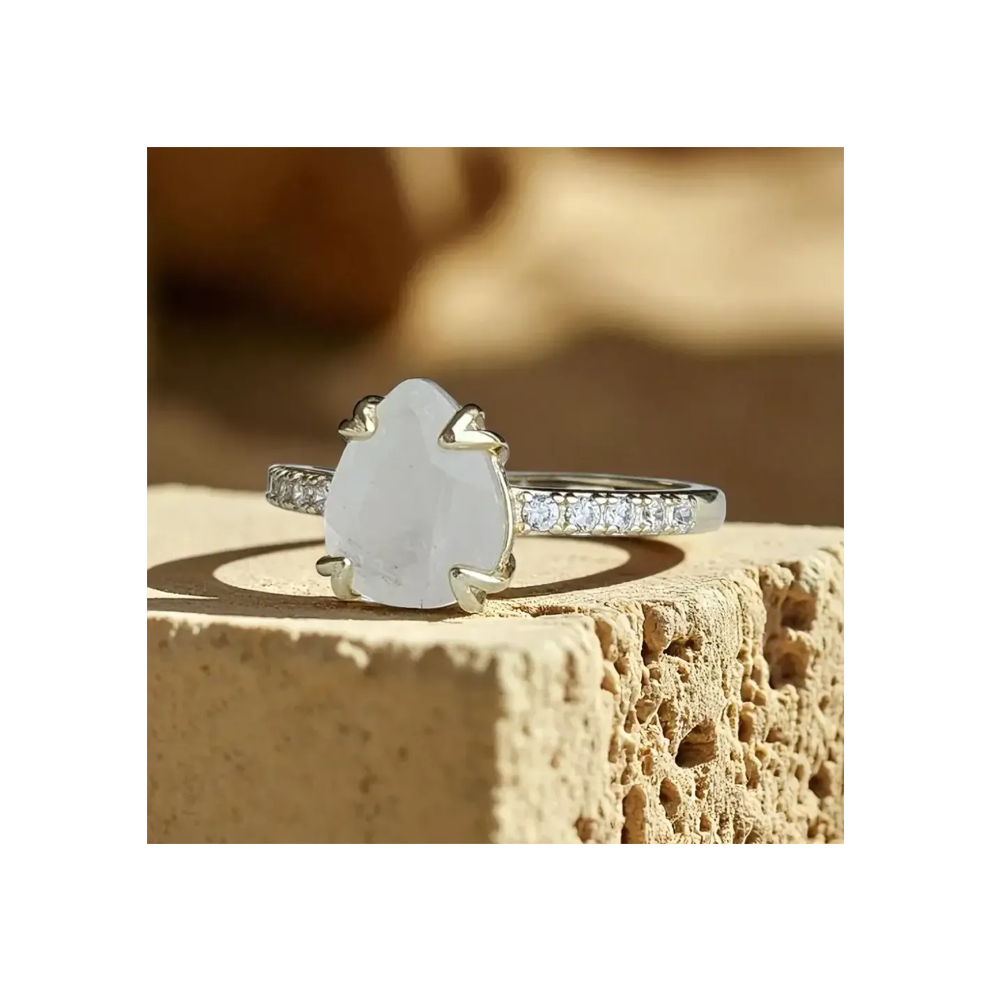 Bague Argent 925 & Pierre de Lune Goutte avec strass – Élégance & Mystère