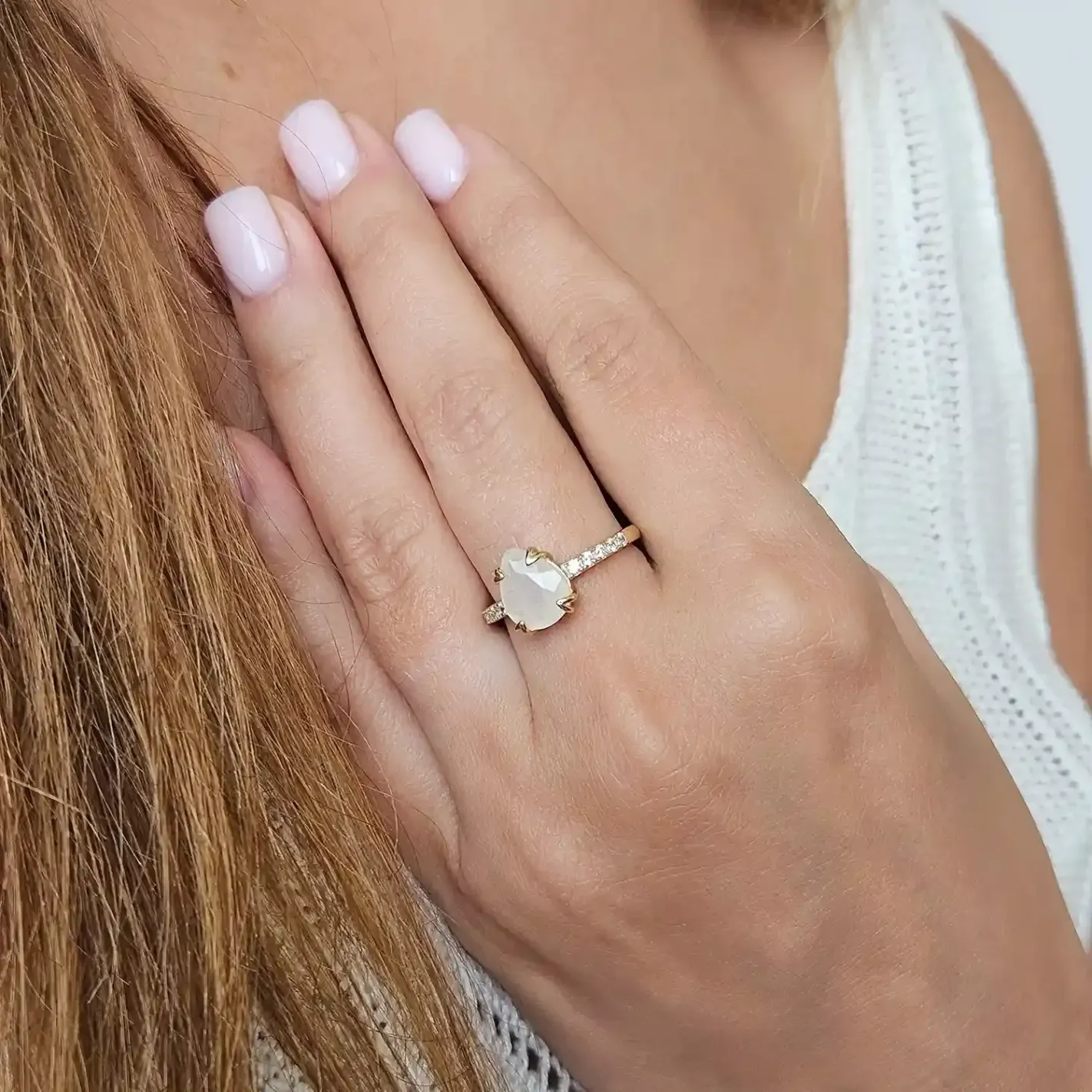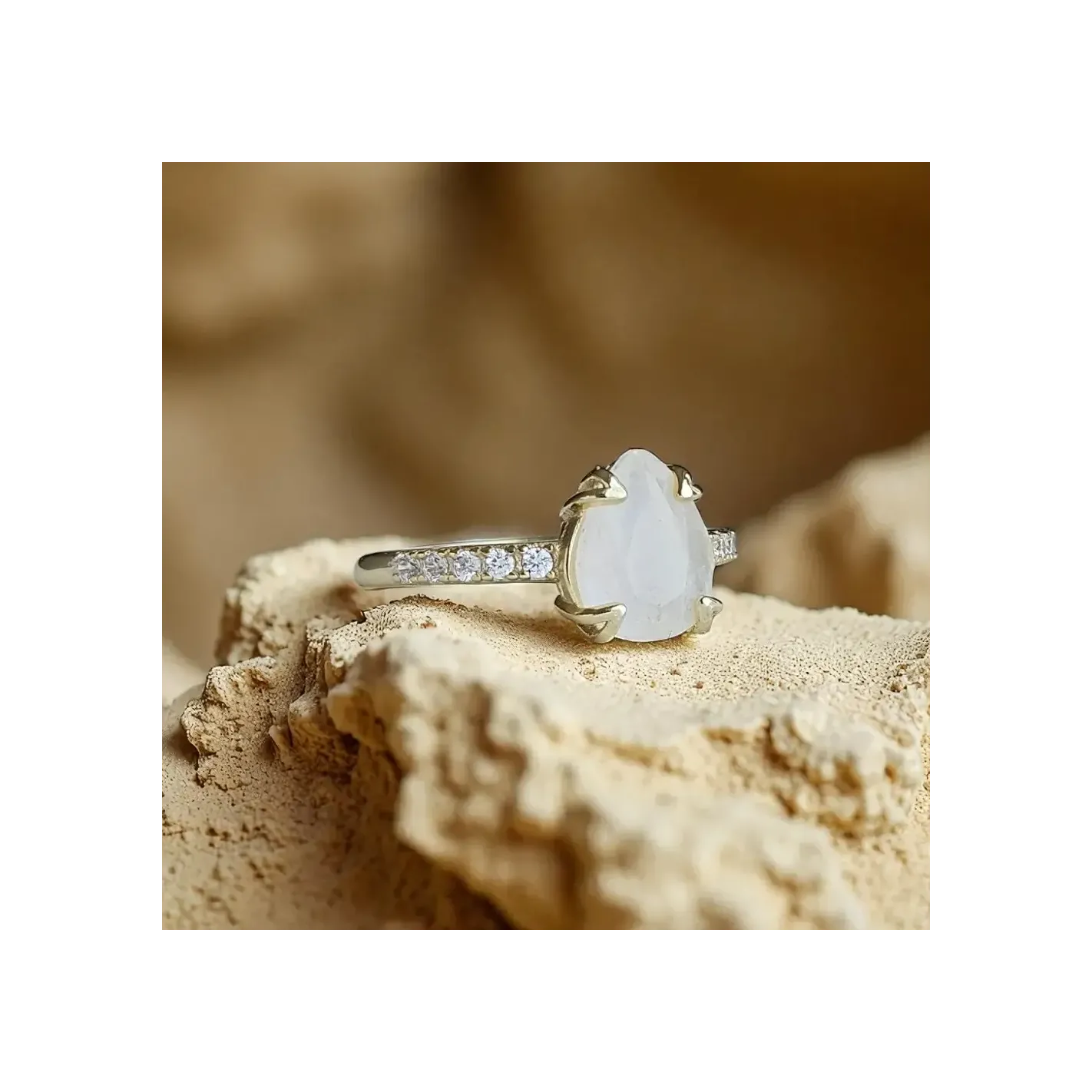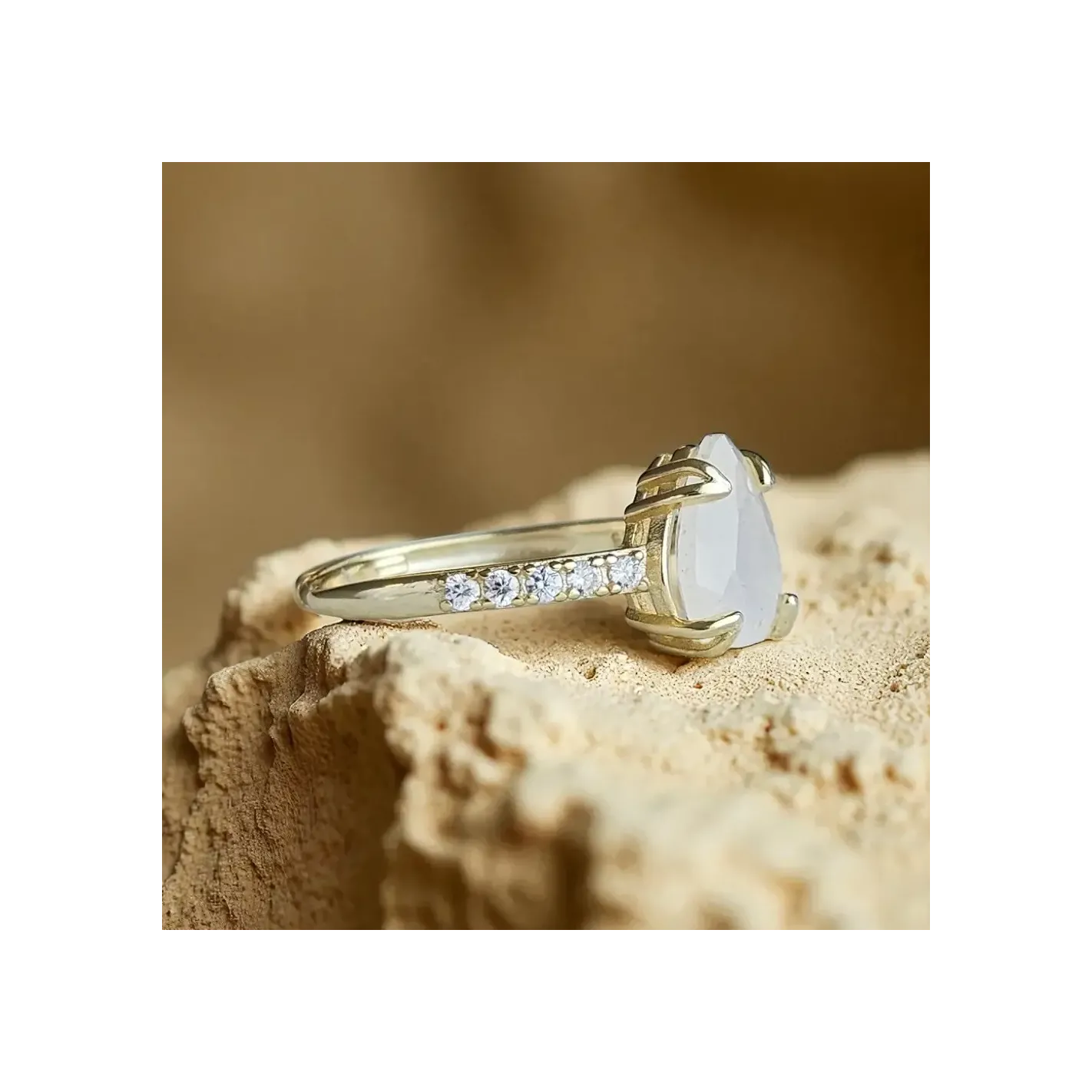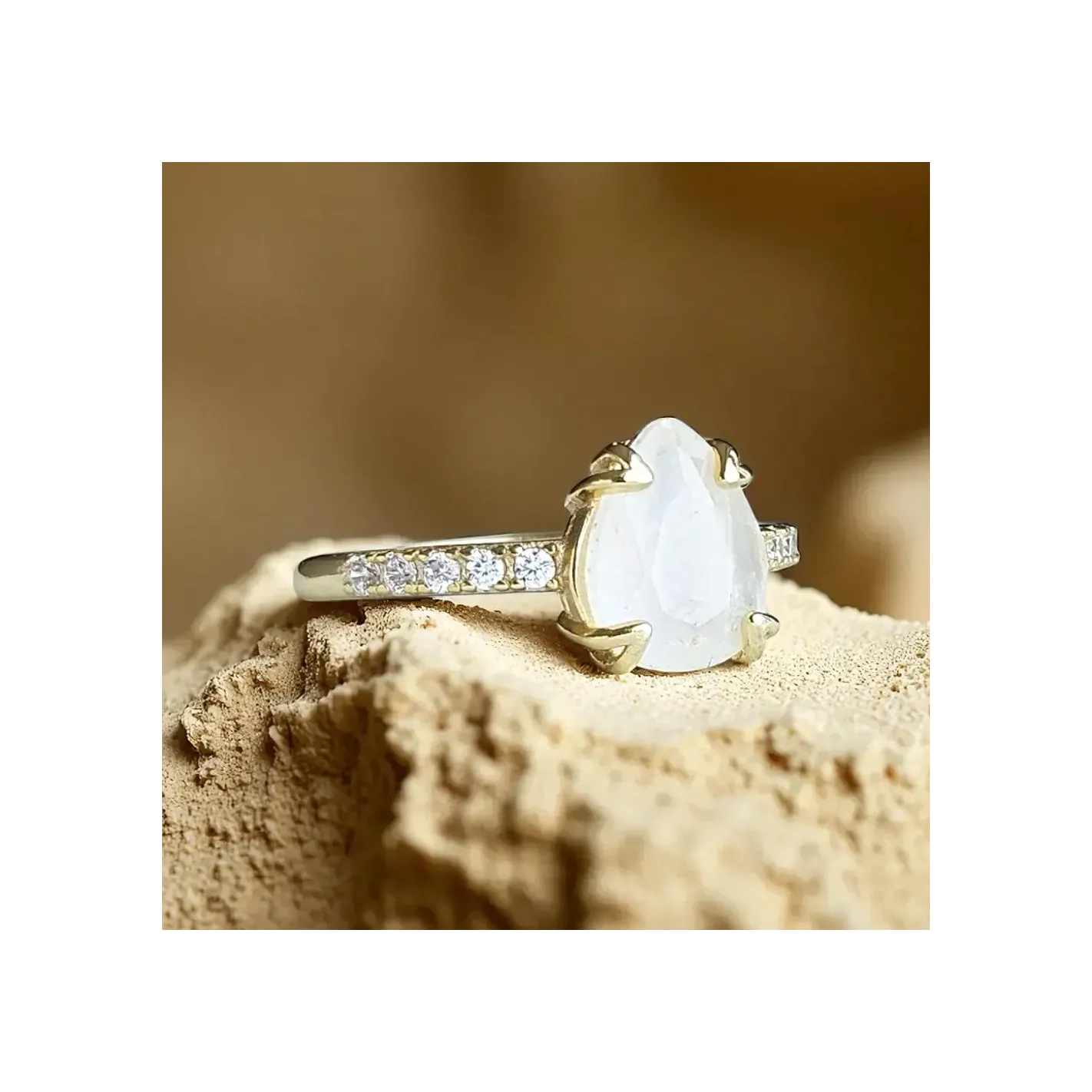 Bague Argent 925 & Pierre de Lune Goutte avec strass – Élégance & Mystère
