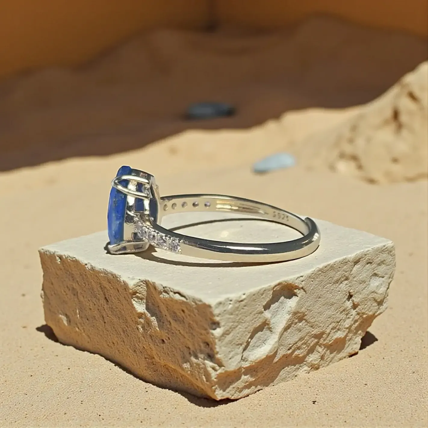 Exprimez votre lumière intérieure avec la Bague Lapis Lazuli Strass & Argent 925 – une goutte de ciel étoilé au service de votre vérité.