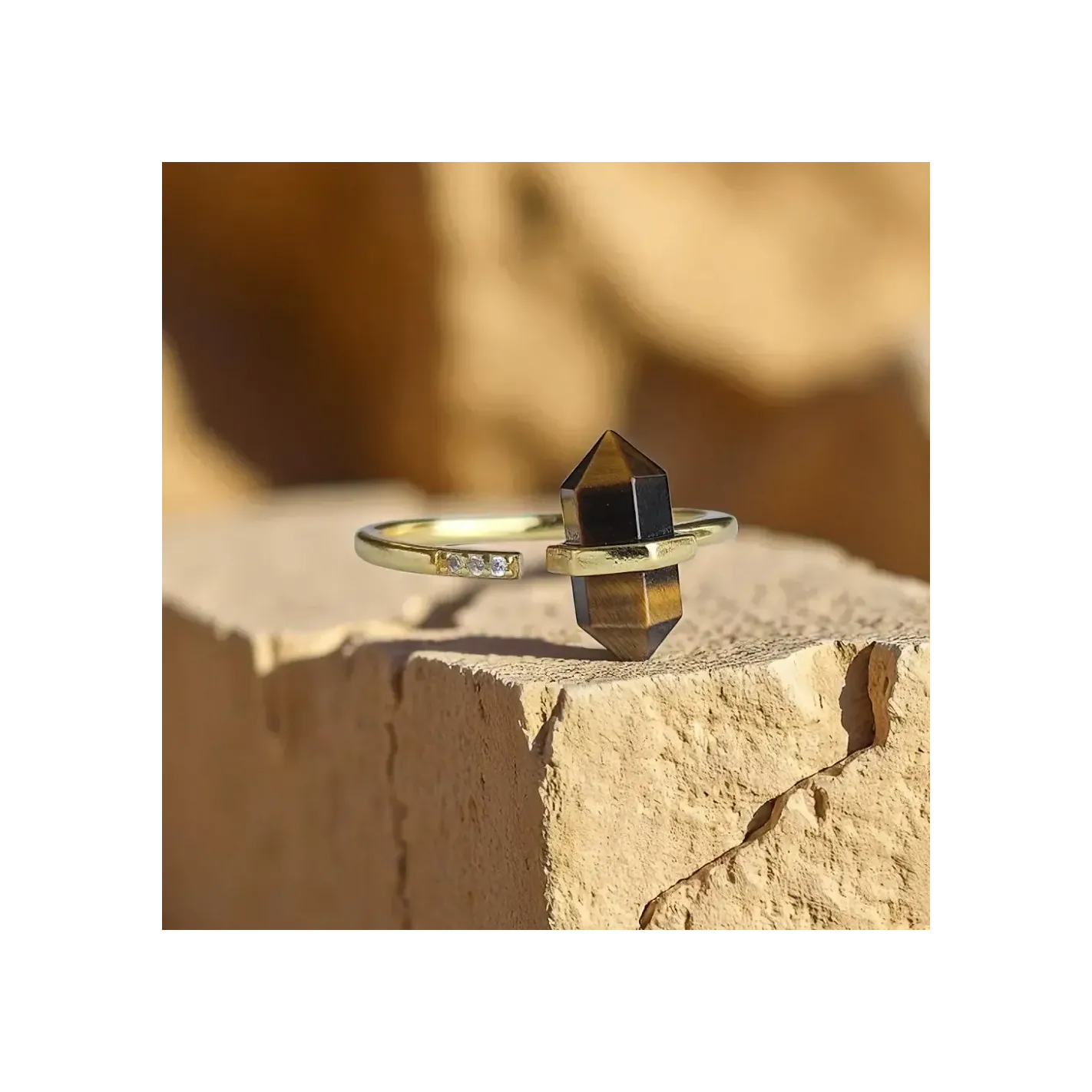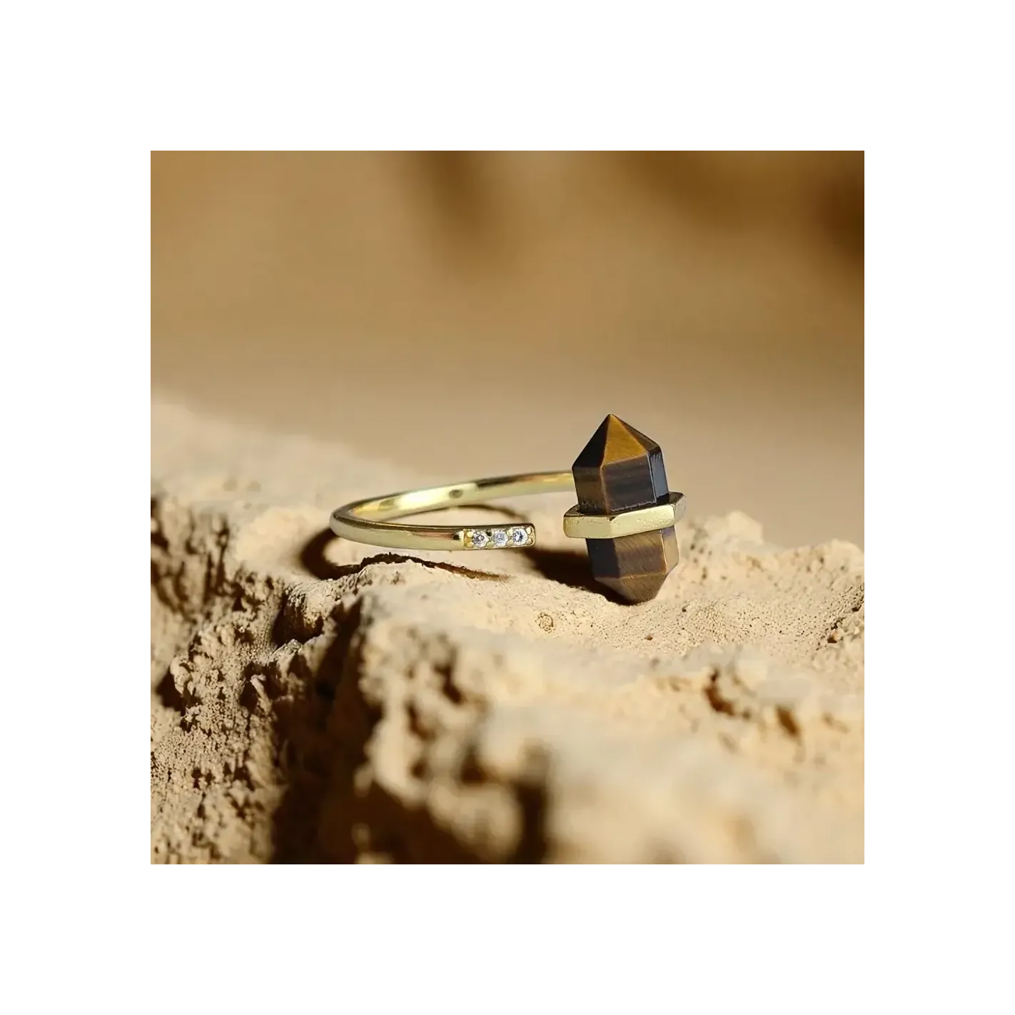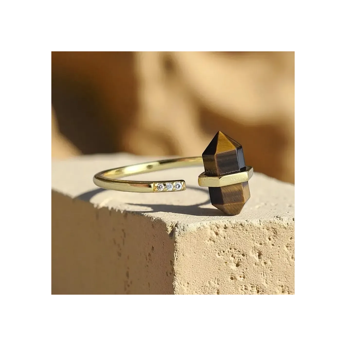 Bague Oeil de Tigre Pointe Dorée Argent 925 – Puissance et Énergie Protectrice