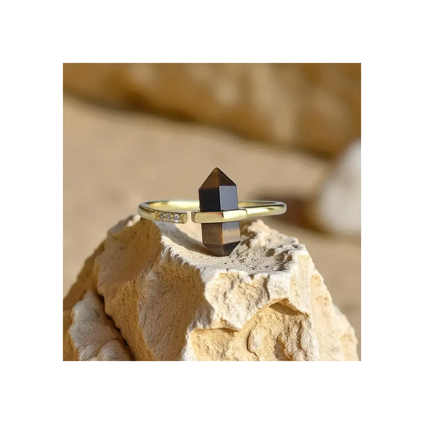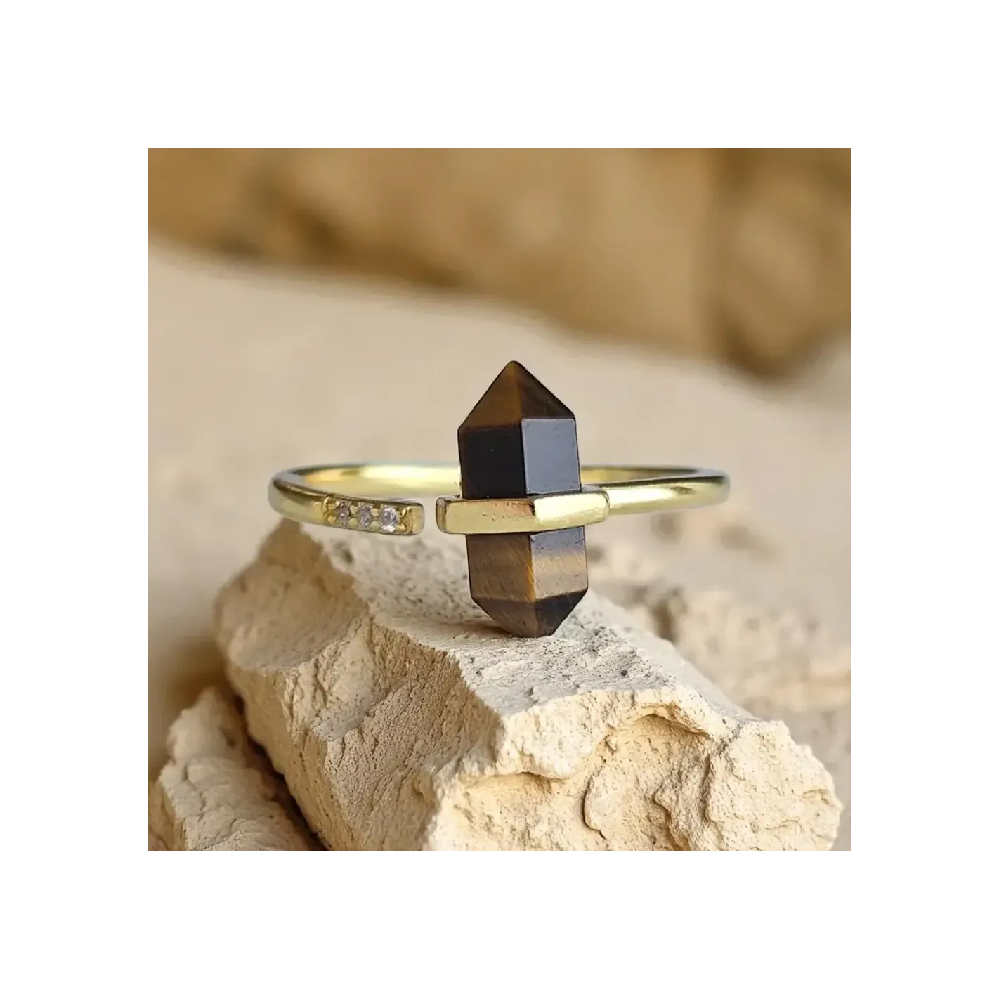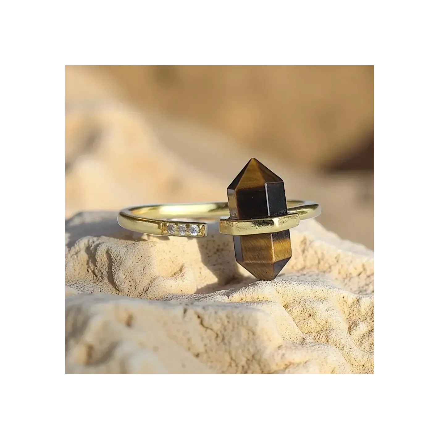 Bague Oeil de Tigre Pointe Dorée Argent 925 – Puissance et Énergie Protectrice