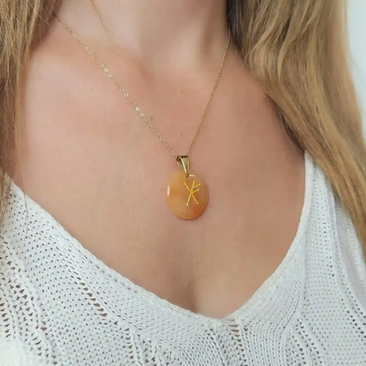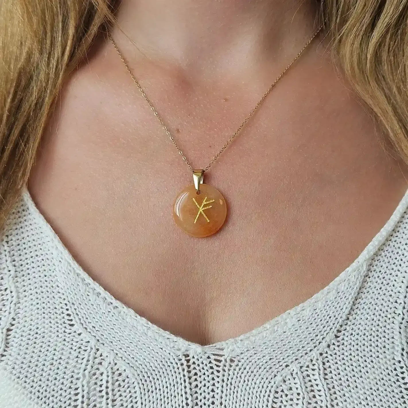 La cornaline est une pierre de vitalité, d’énergie et de confiance. Elle stimule la motivation, l’élan créatif et aide à manifester des intentions concrètes. Associée aux runes de prospérité, Fehu et Gebo, elle agit comme une amulette d’abondance qui attire les opportunités, favorise les échanges équilibrés et ouvre les portes du succès. Ce talisman élève votre vibration pour entrer en résonance avec la générosité de l’univers.
