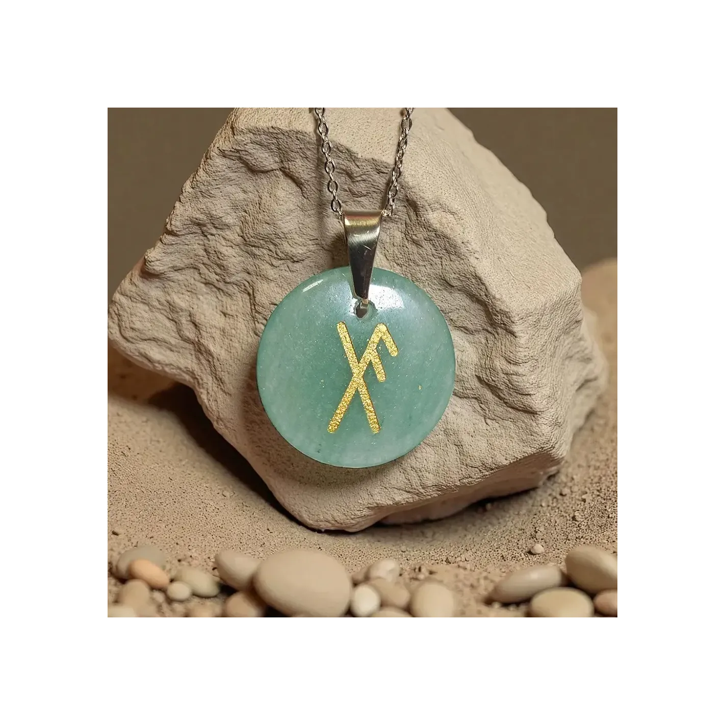 Talisman runique Chance en Pierre de Jade : un puissant amulette alliant la magie des runes et la prospérité du jade pour attirer la chance et l'abondance.