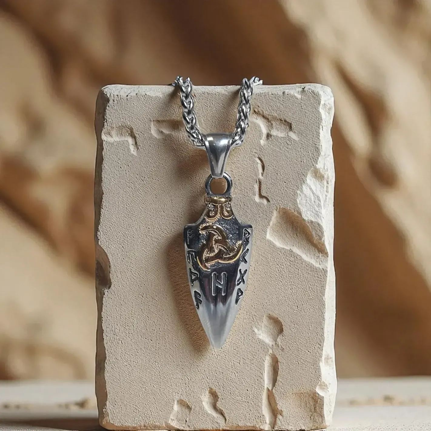•Un bijou viking au design unique, associant la flèche aux runes anciennes
