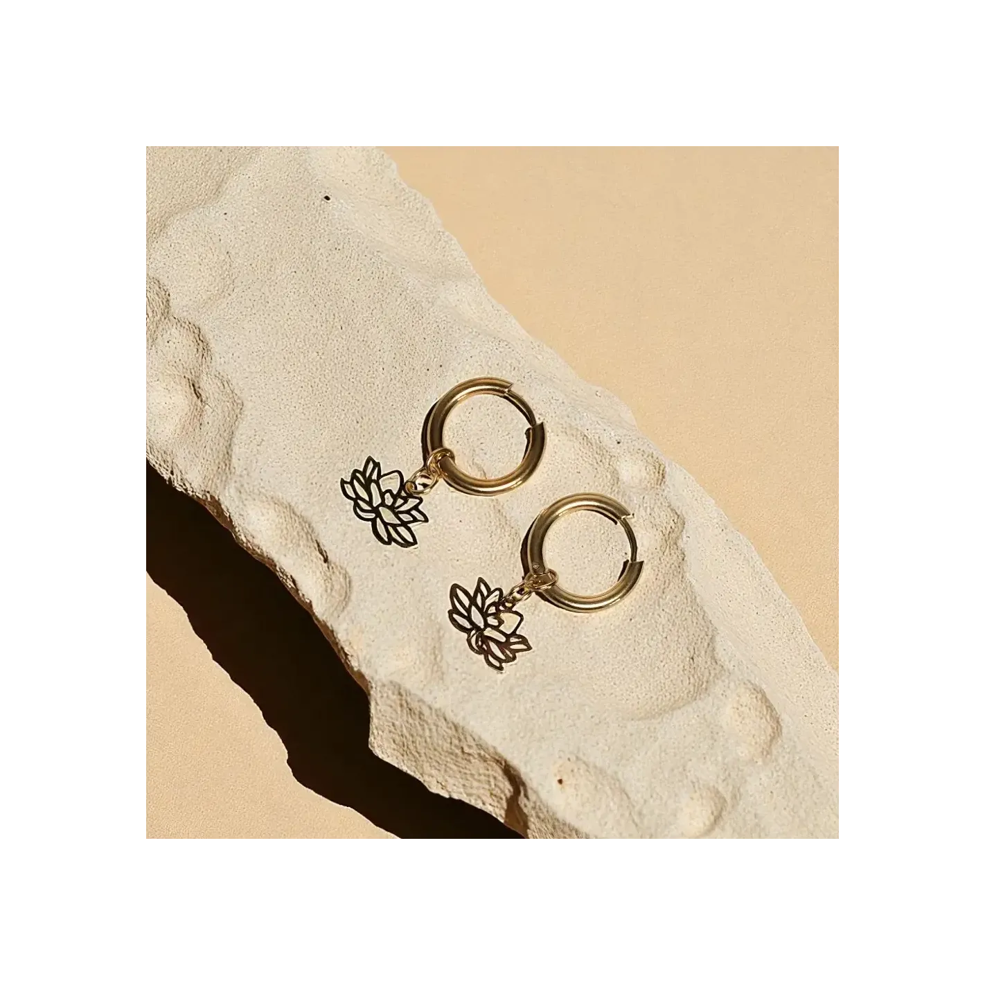 Les Boucles d'oreilles Lotus boucle incarnent l’harmonie, la beauté et la sagesse. Symbole universel de l’éveil de la conscience, elles diffusent une énergie paisible et lumineuse.