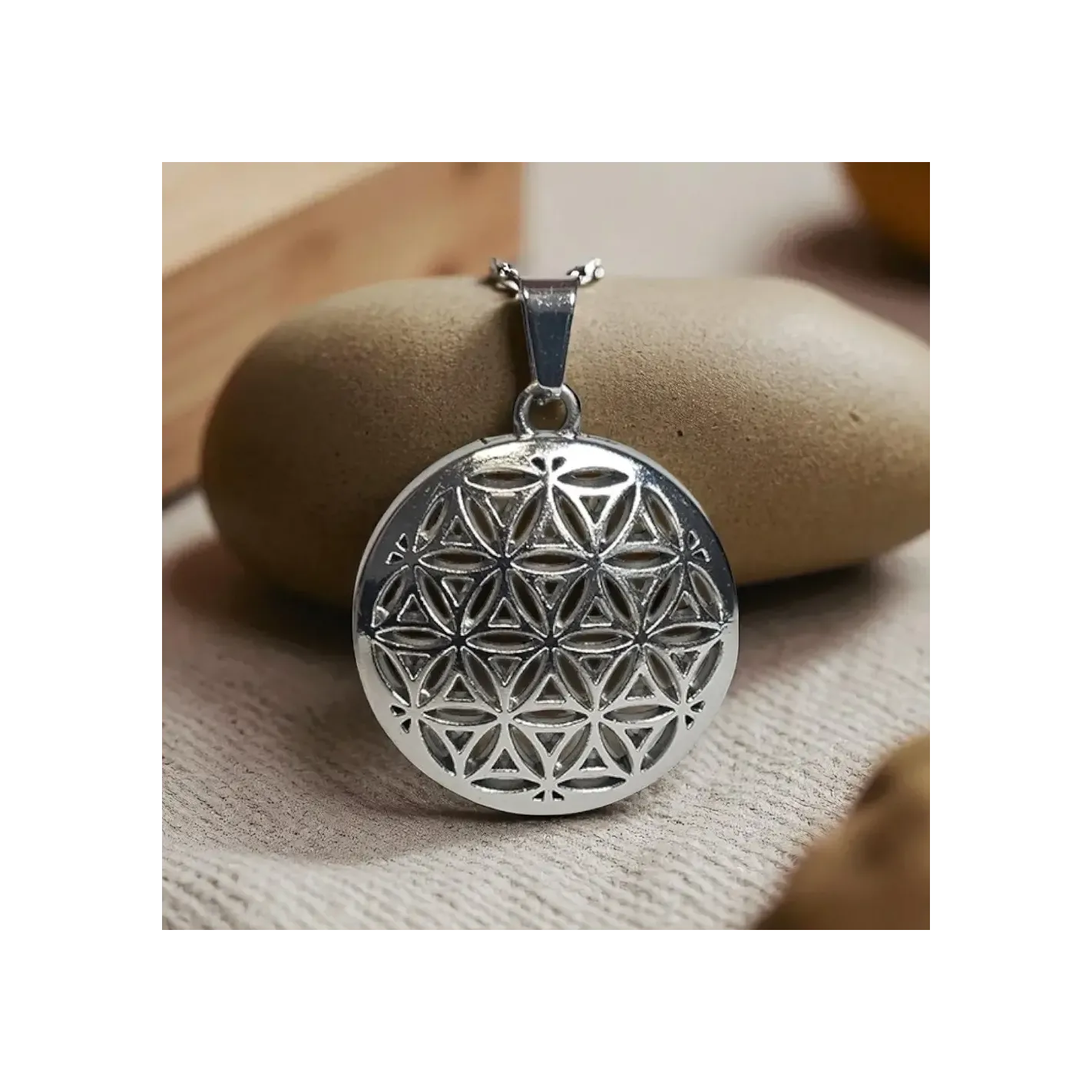 Le Pendentif Fleur de vie et cristal de roche un symbole puissant