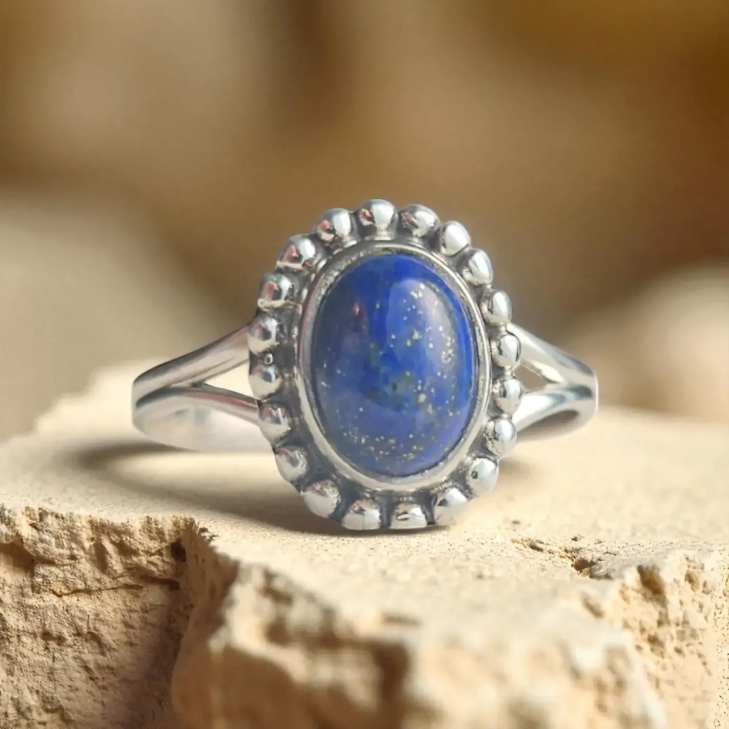 Bague Lapis Lazuli Lior – Argent – Pierre ovale – Tailles variées