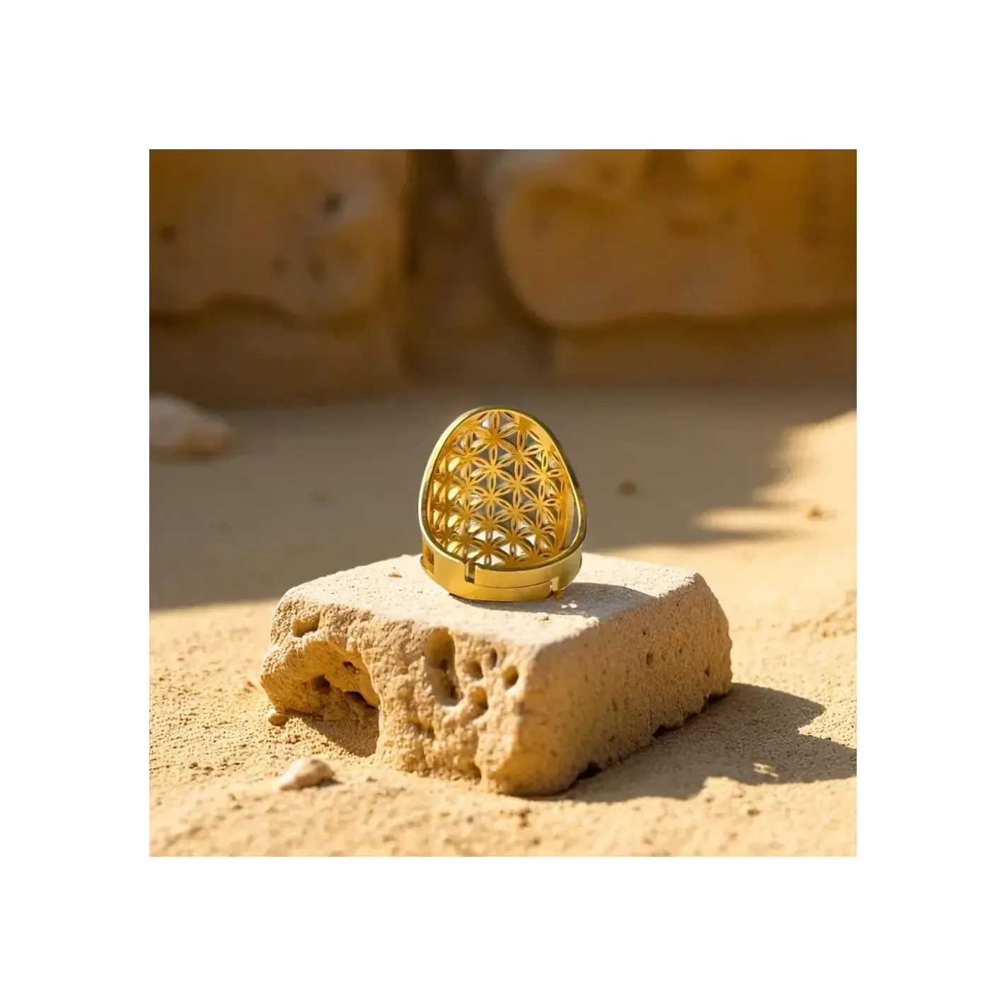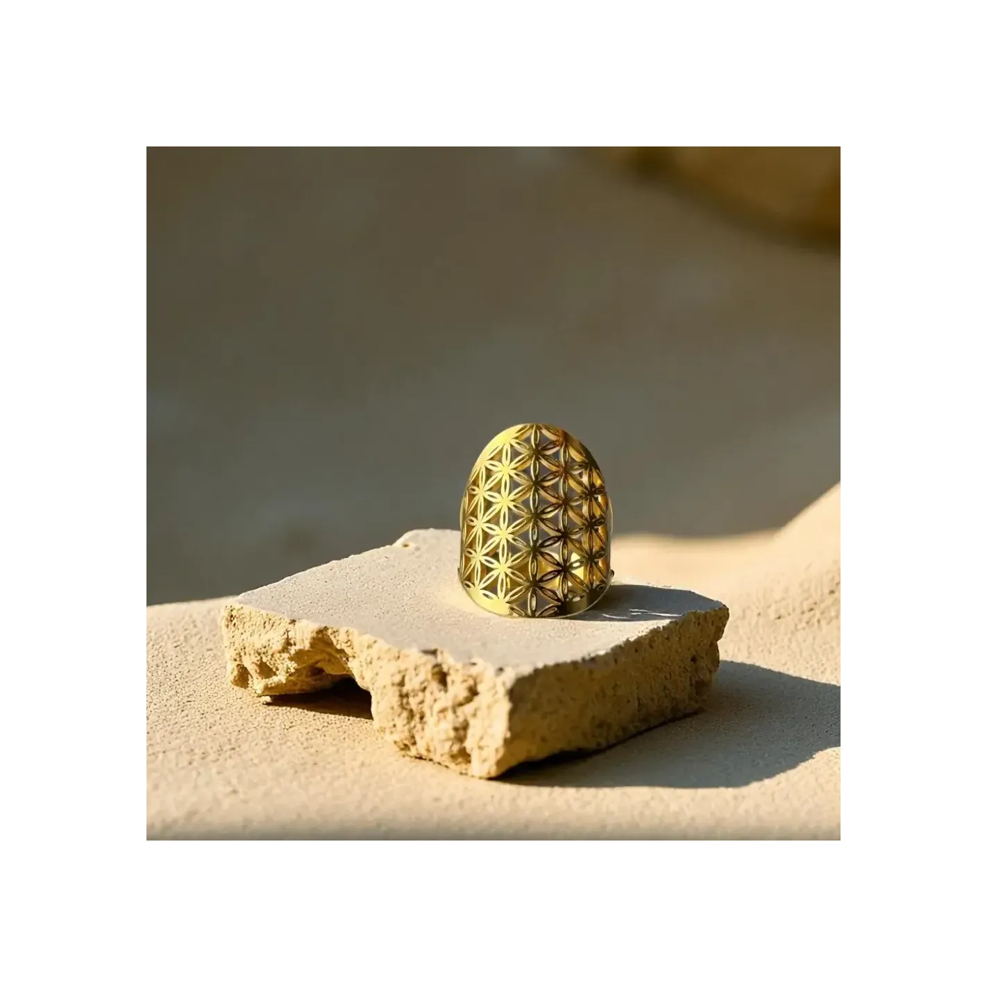 Cette bague est réalisée avec soin, en utilisant des matériaux de qualité. La fleur de vie, gravée avec minutie sur la pierre naturelle, est un symbole puissant de régénération et de croissance. Portez ce bijou avec fierté, en tant que talisman protecteur et source d'énergie positive.