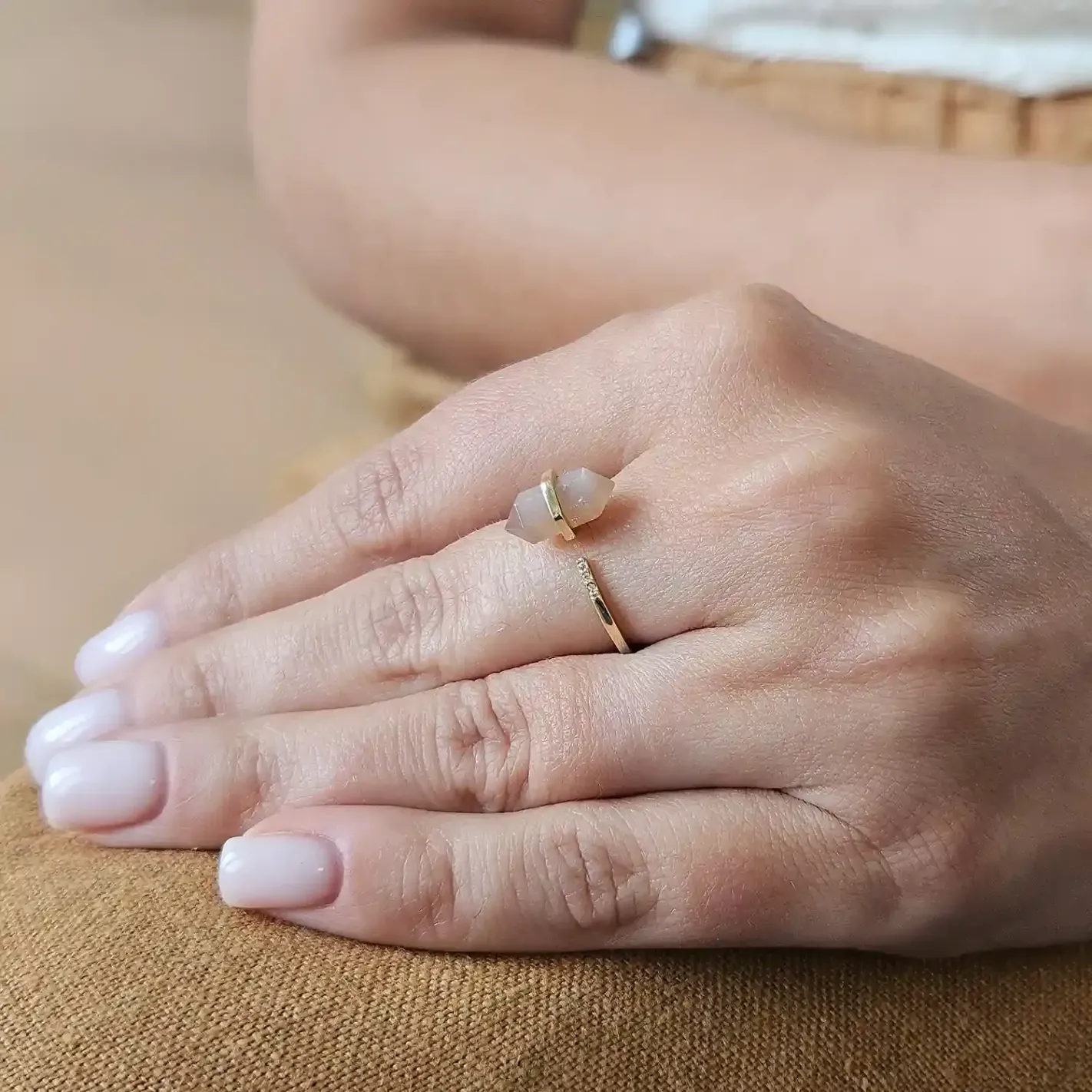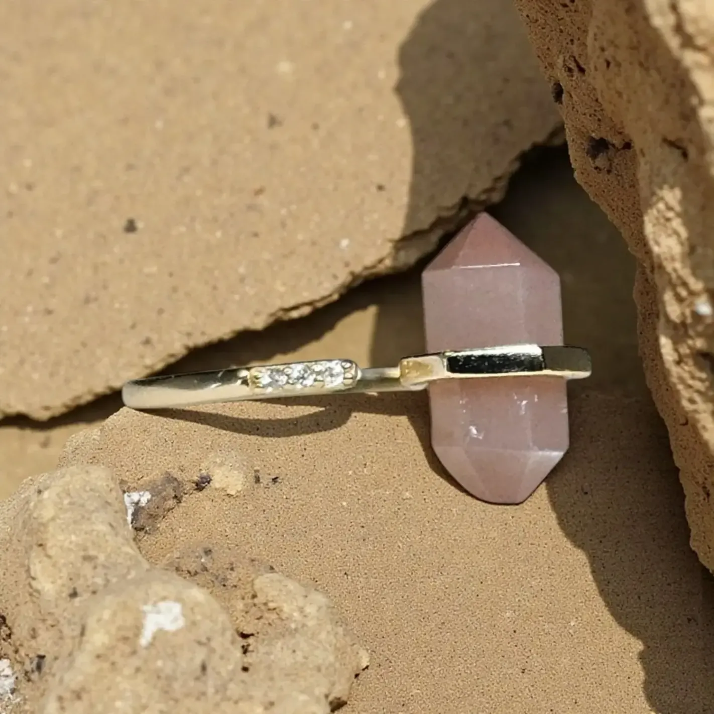 Bague Pierre de Soleil Double pointe – Argent plaqué or – Magnétisme et chaleur intérieure