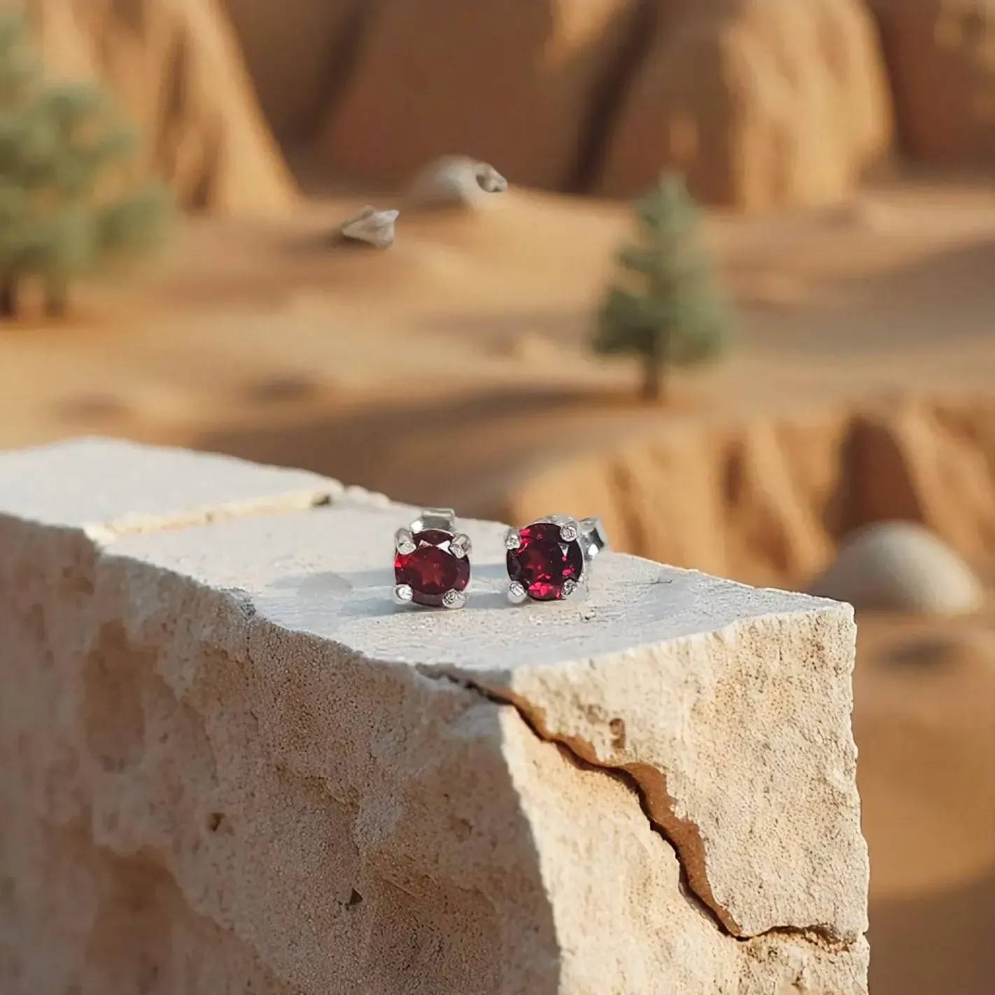 Puces d’oreilles Grenat – Argent – Force intérieure et enracinement chaleureux