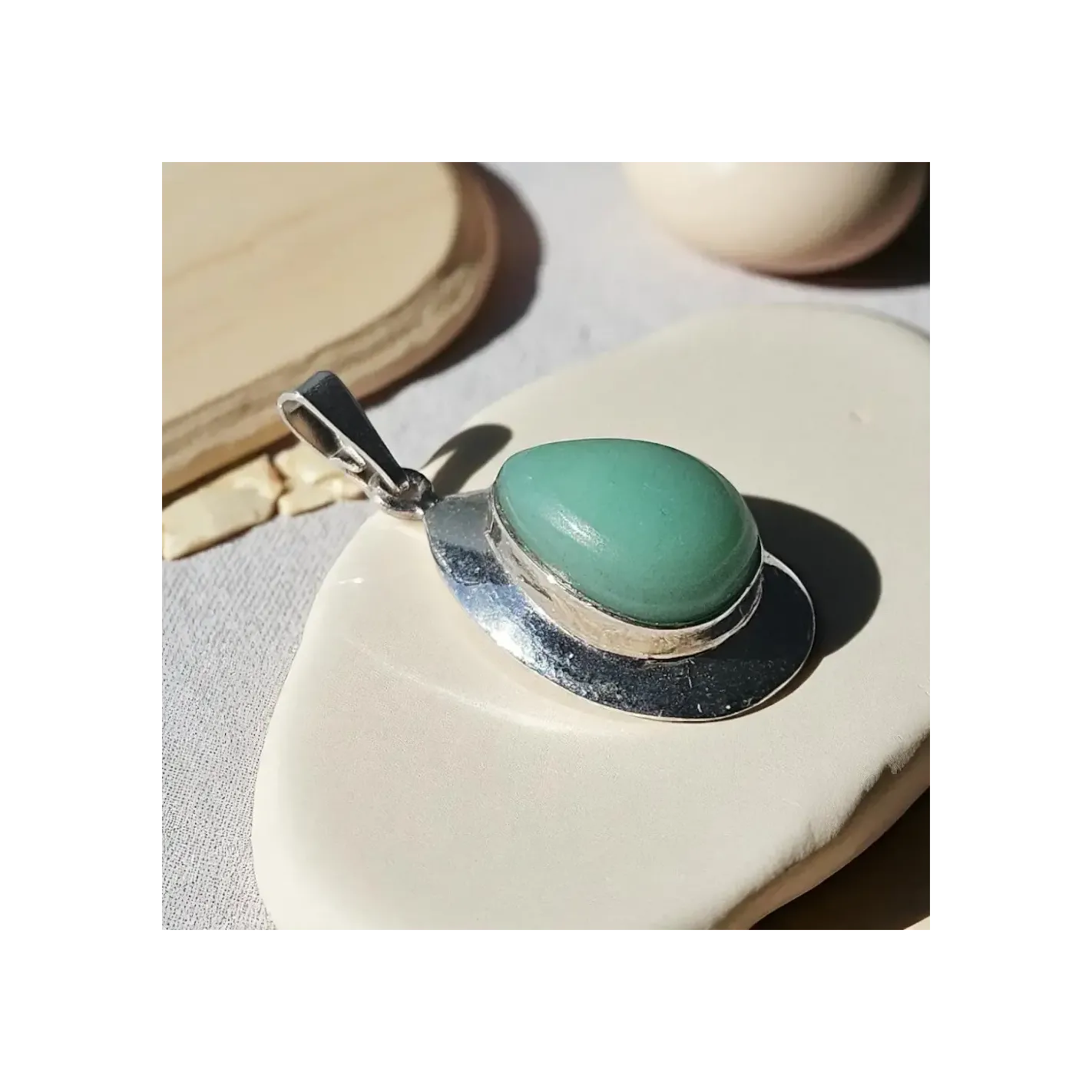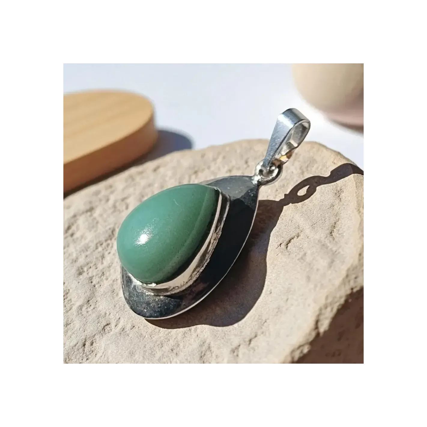 Portez la sagesse millénaire du Jade avec ce pendentif raffiné, une goutte d’harmonie sertie d’argent sacré.
