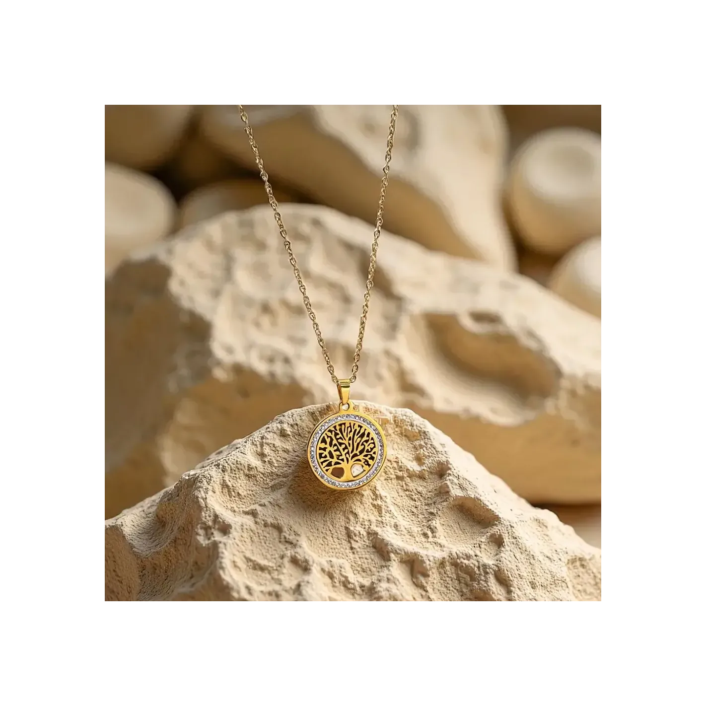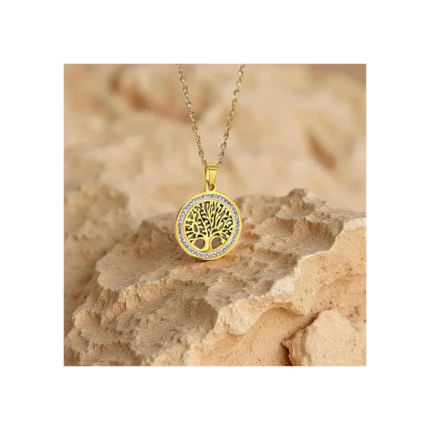 Rayonnez votre force intérieure avec ce pendentif Arbre de Vie étincelant, symbole d’harmonie entre ciel et terre.