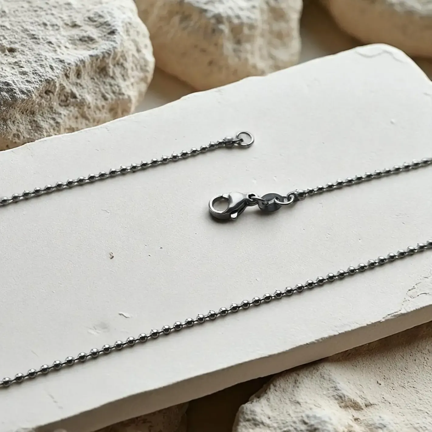 Une chaîne légère et subtile, composée de fines billes de 1 mm, pour sublimer vos pendentifs avec simplicité et fluidité.