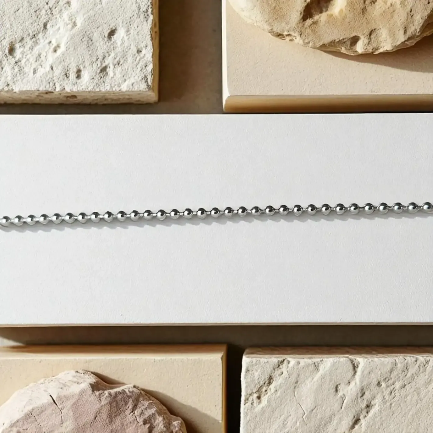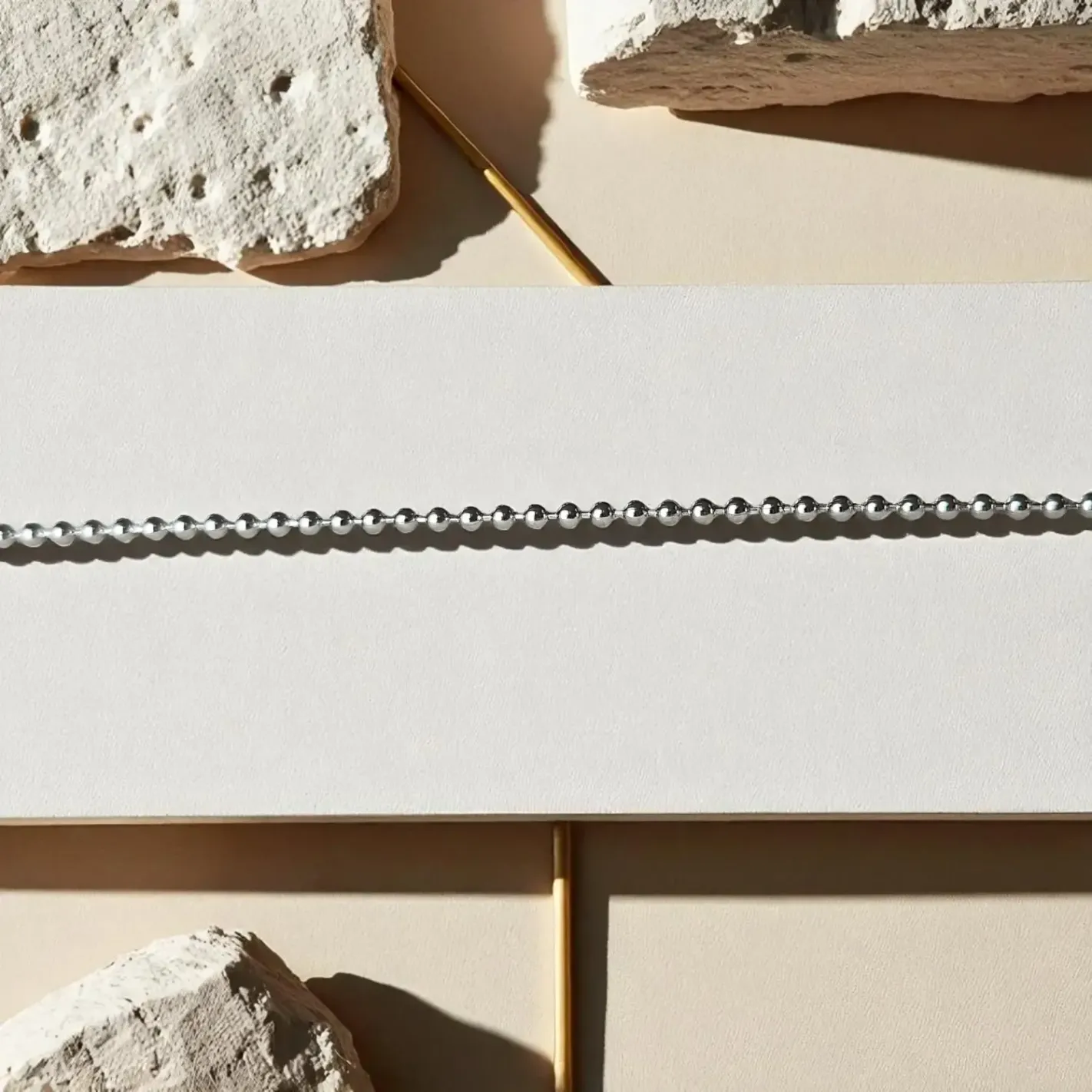 Idéale pour porter un petit pendentif, une pierre roulée percée ou un talisman discret. Sa maille boule de 1 mm offre une allure moderne, douce et délicate, adaptée à un port quotidien comme à une tenue plus spirituelle.