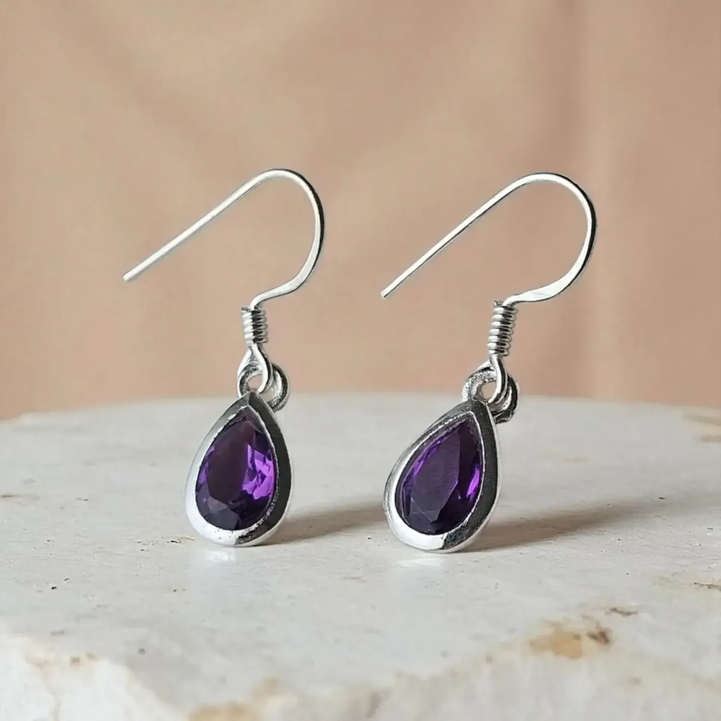 Boucles d'oreilles pendantes Améthyste & Argent 925
