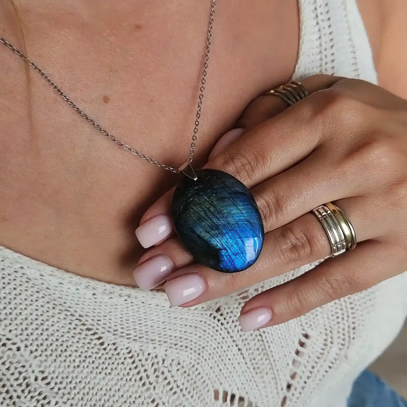 Purifiez régulièrement votre pendentif à l’eau distillée non salée ou par fumigation. Rechargez-le à la lumière lunaire ou sur un amas de quartz. Évitez les chocs ou l’exposition prolongée à l’eau. Conservez-le dans une pochette en tissu pour préserver son éclat iridescent.