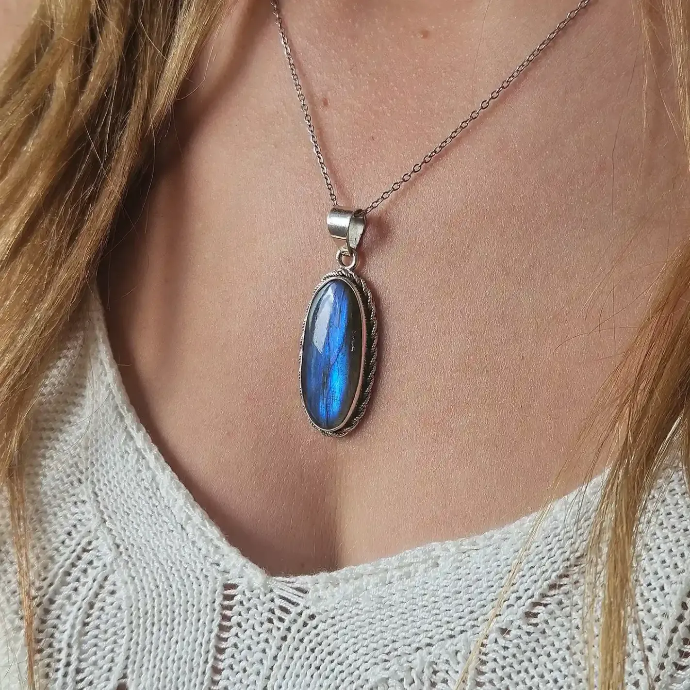 Pendentif Labradorite Bleutée Ovale – Eveil de l'intuition - protection champ énergétique