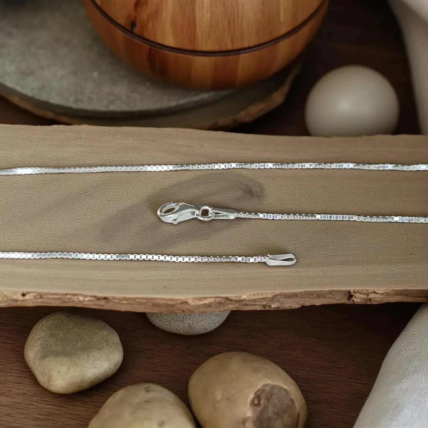 La maille vénitienne carrée est réputée pour sa solidité et son élégance intemporelle. Elle se compose de petits maillons carrés parfaitement alignés, offrant un aspect géométrique raffiné. Cette chaîne en argent 925 s’accorde avec tous les styles et met en valeur les pendentifs en pierre naturelle ou symbolique, tout en pouvant se porter seule pour un look minimaliste.