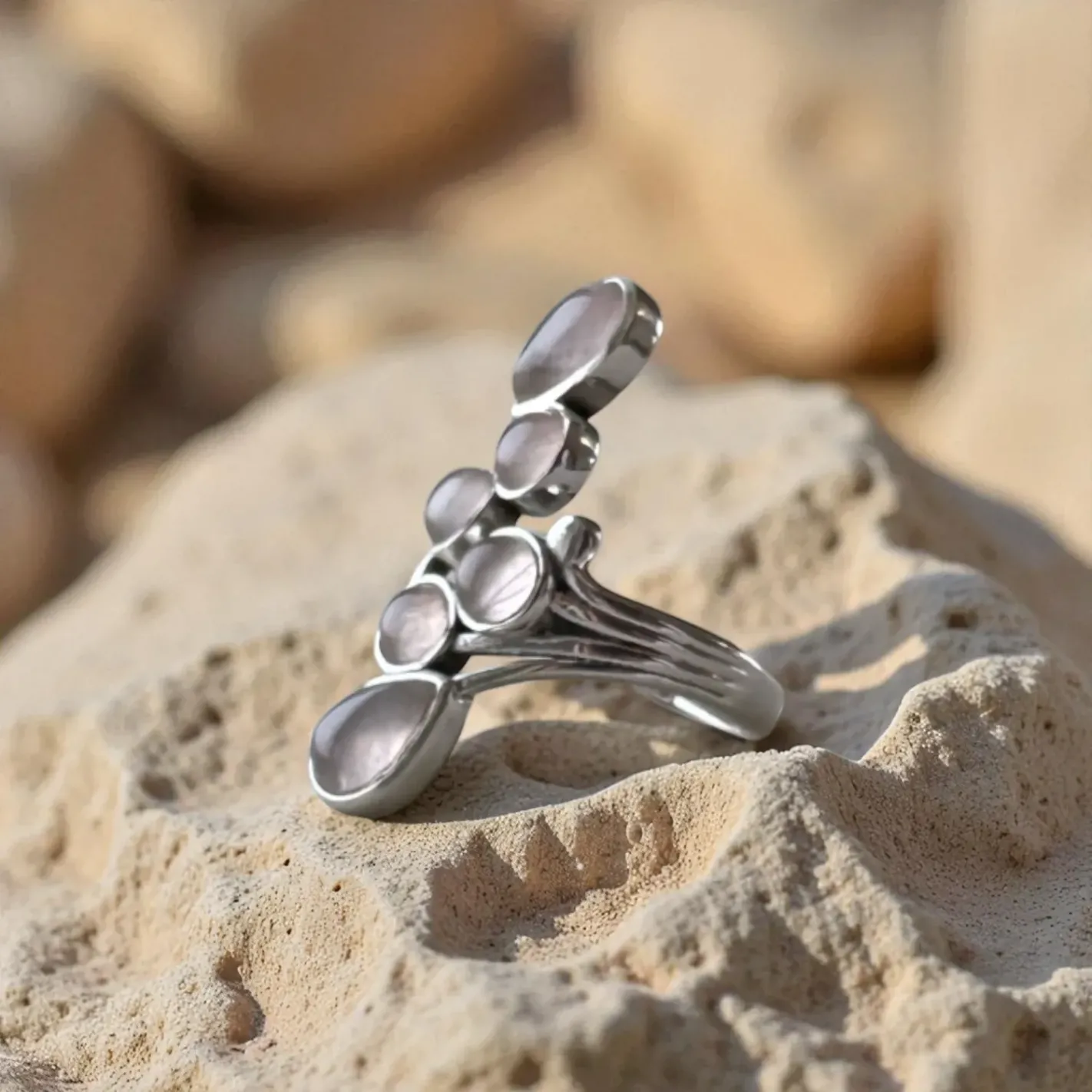 Bague Quartz Rose Gouttes – Amour de Soi & Douceur Émotionnelle