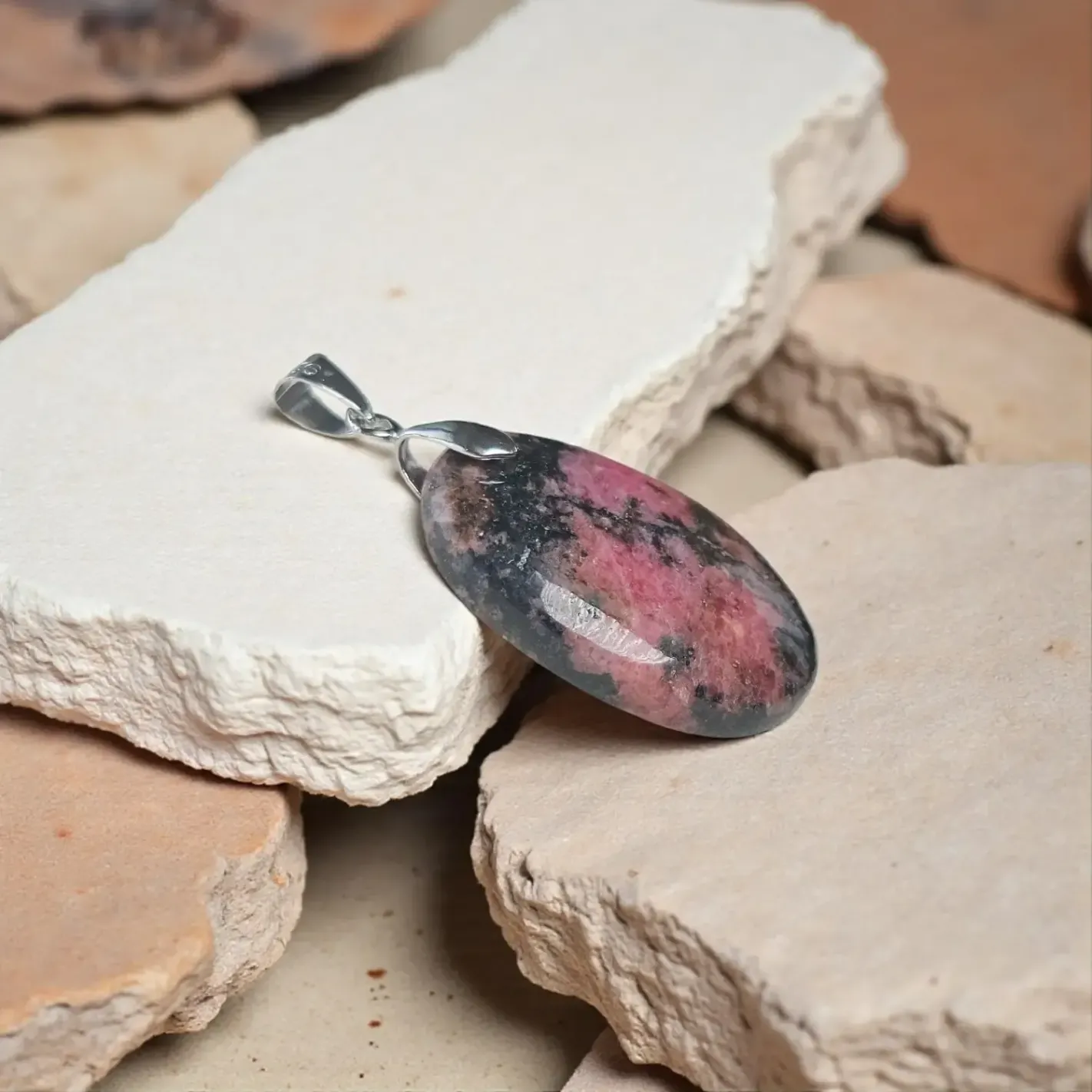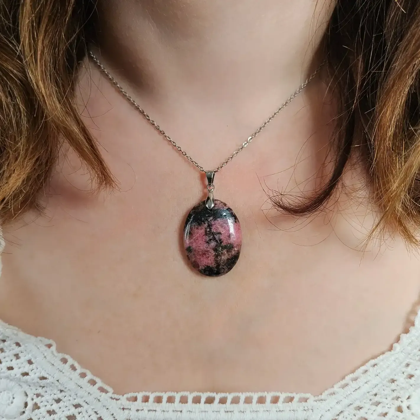 Pendentif Rhodonite Ovale – Guérison du Cœur, Émotions Douces & Stabilité Intérieure