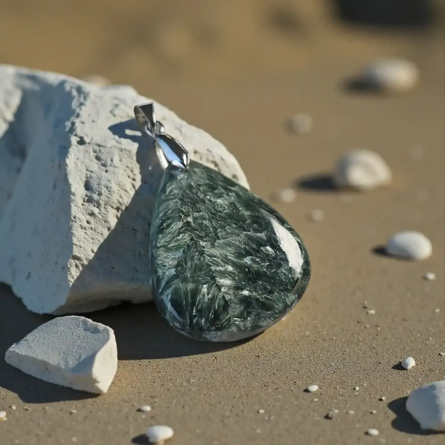 Pendentif Séraphinite Auralis – Rayonnement du Cœur & Connexion Angélique
