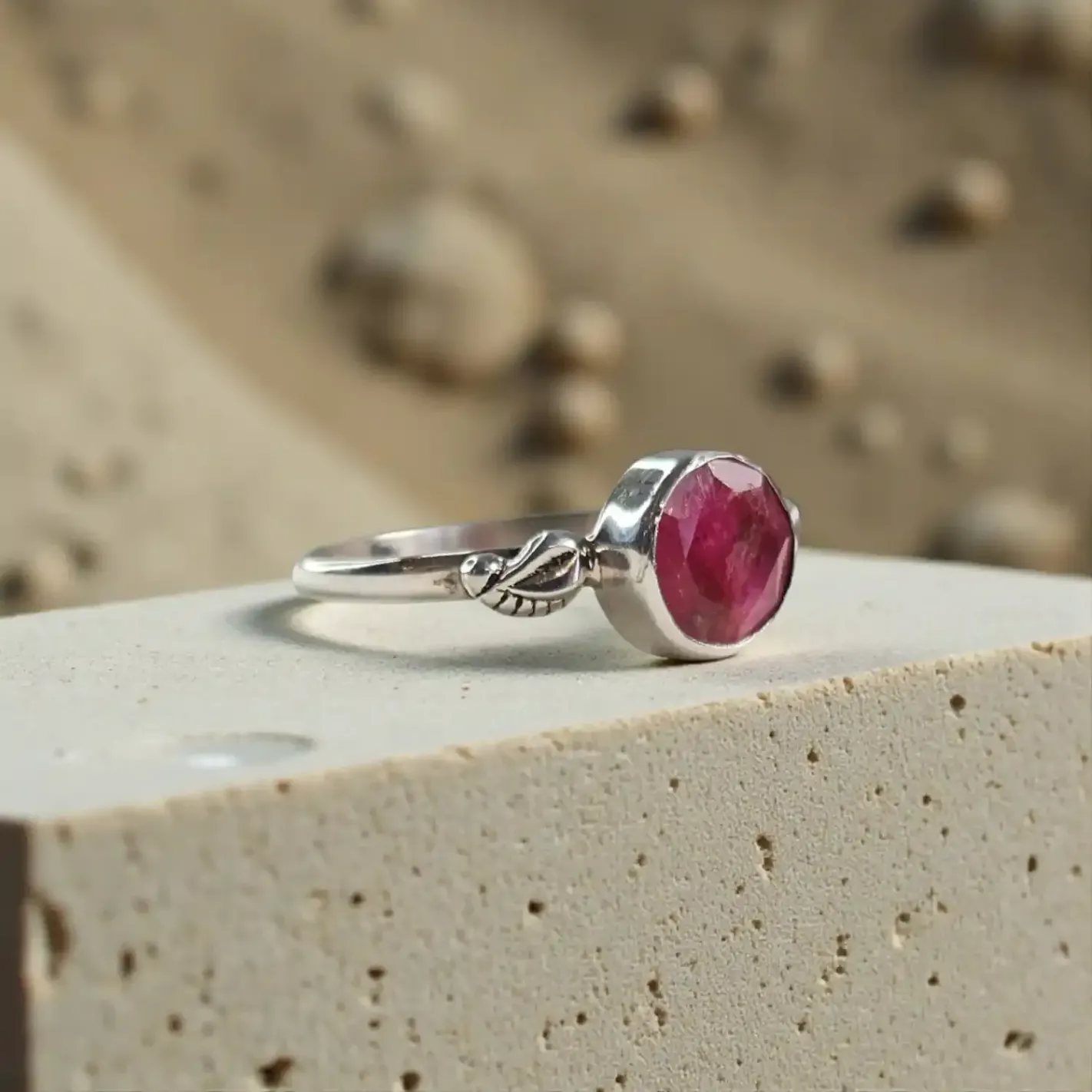 Silwen, “brindille lumineuse”, évoque la poésie d’une nature bienveillante. Cette bague en argent, ornementée de deux fines feuilles encadrant une rhodochrosite ronde de 6 mm, allie grâce végétale et énergie de guérison. Elle s’adresse aux âmes sensibles, en quête de paix intérieure et d’harmonie émotionnelle.