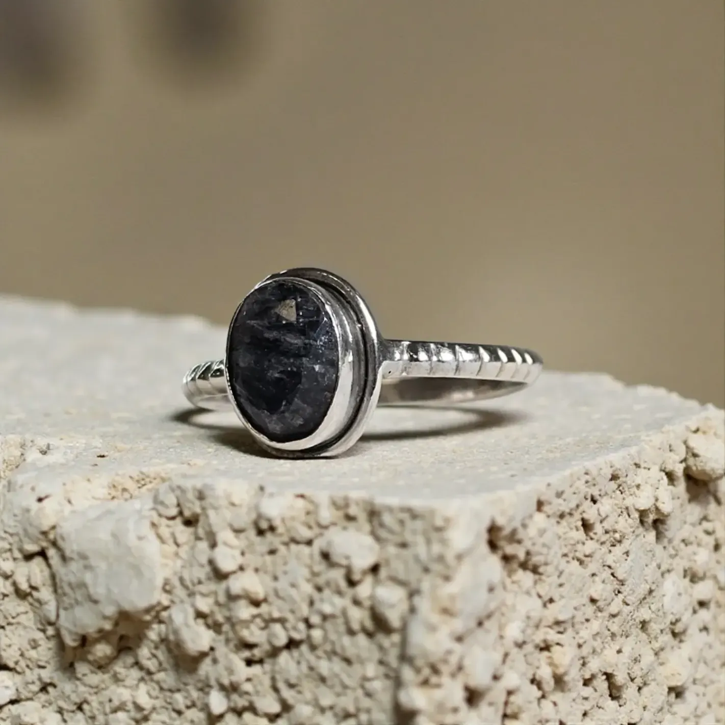 La bague Nélys unit élégance et profondeur. Son saphir naturel, de forme ovale (8 mm sur 6 mm), est serti sur une monture en argent simple. Véritable pierre de sagesse et d’intégrité, elle invite à la clarté intérieure, à la loyauté envers soi-même et à l’élévation de l’esprit.