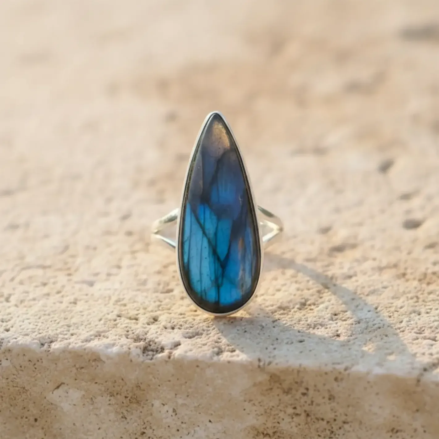Bague Labradorite Goutte d’Aurore – Élégance Mystique et Protection Intérieure