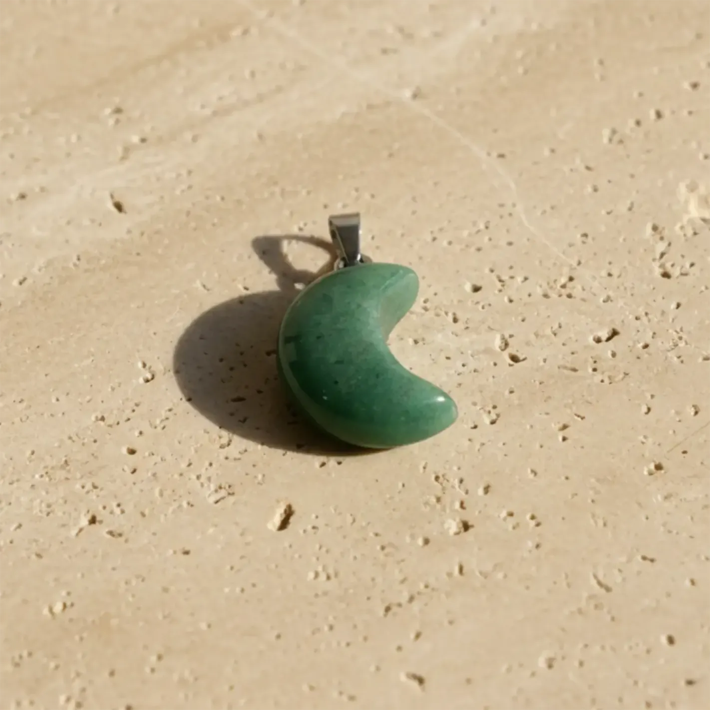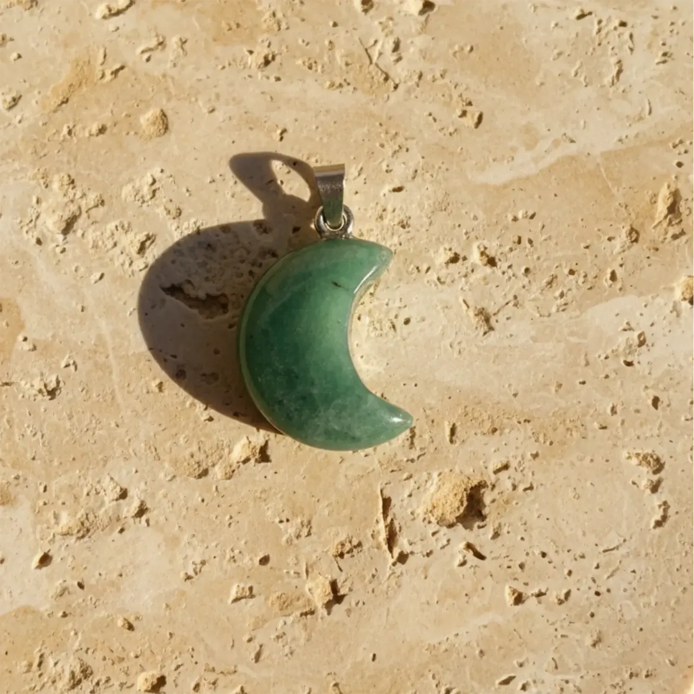 Pendentif Aventurine Verte Lune – Chance Douce & Équilibre Émotionnel