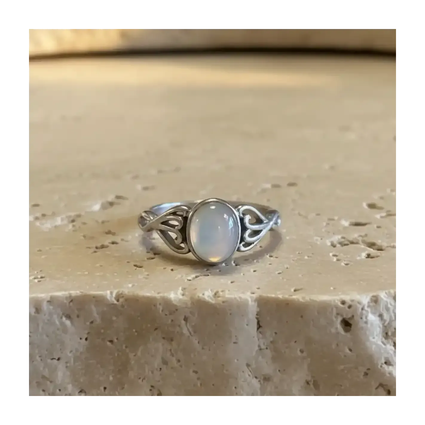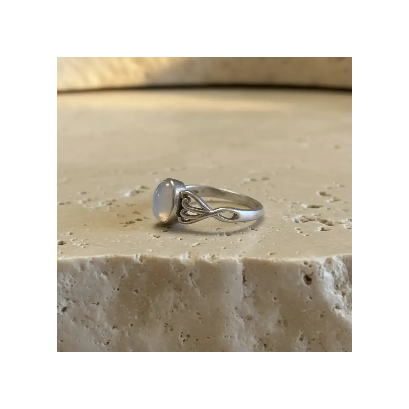 Discrète et élégante, cette bague fine en argent met en lumière une pierre de lune naturelle taillée en rond de 7 mm — elle s’adapte à toutes les énergies et toutes les envies.