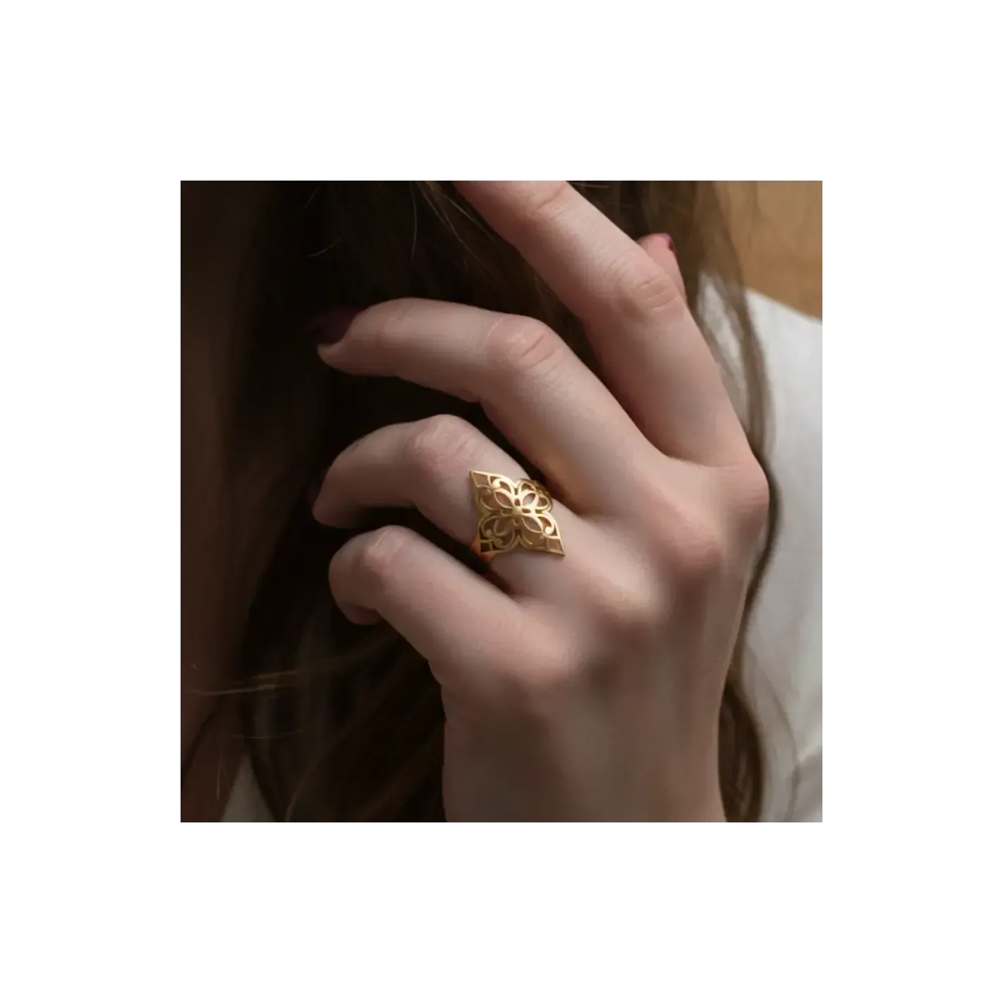 Grâce à son système réglable, cette bague s’adapte facilement à différentes tailles de doigt, assurant confort et praticité. Elle peut être portée seule pour un style minimaliste ou associée à d’autres bijoux pour un look bohème ou spirituel affirmé.