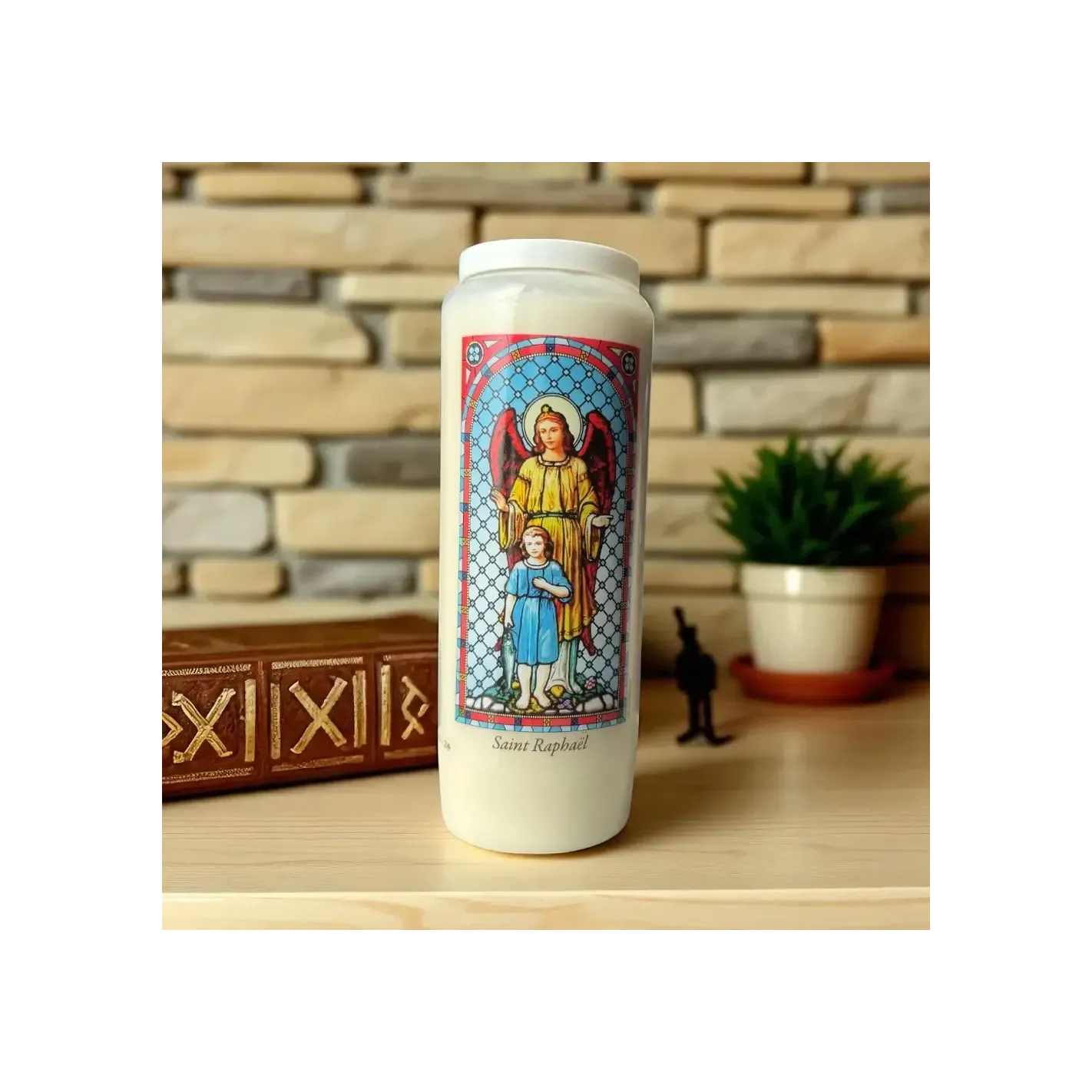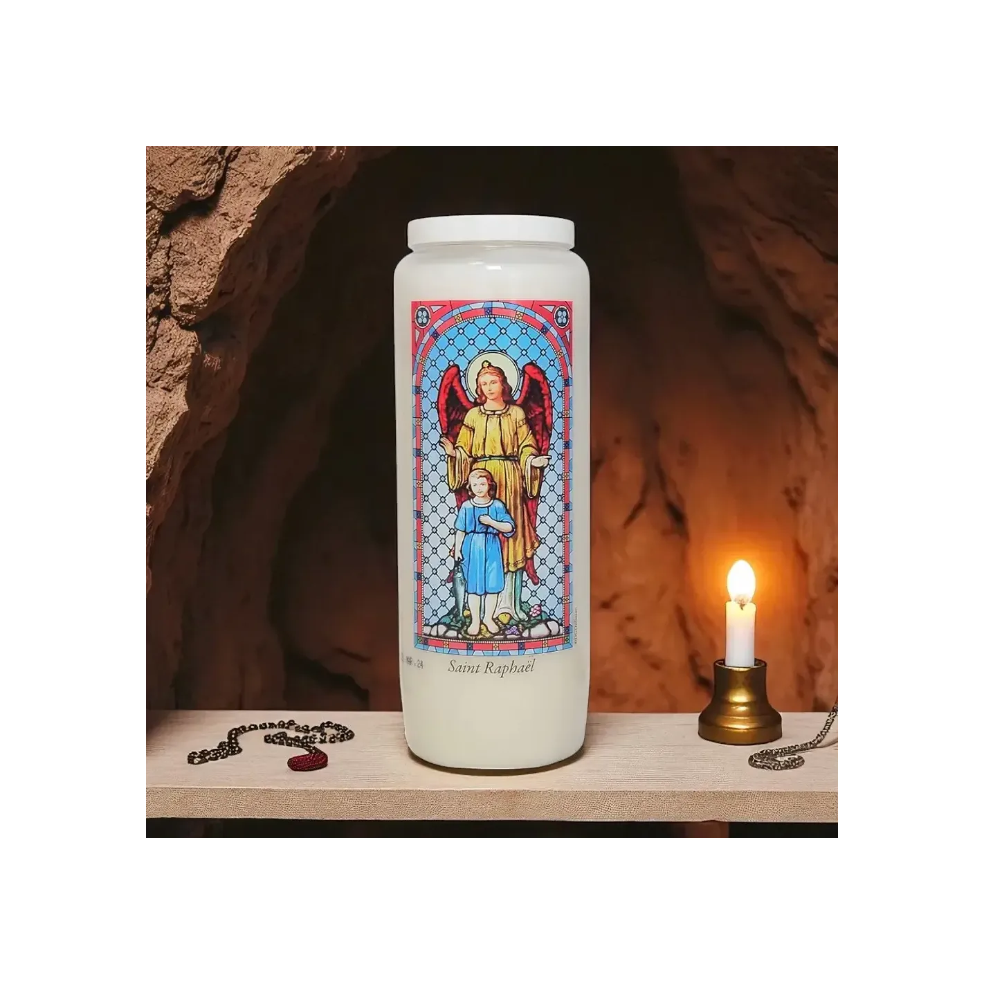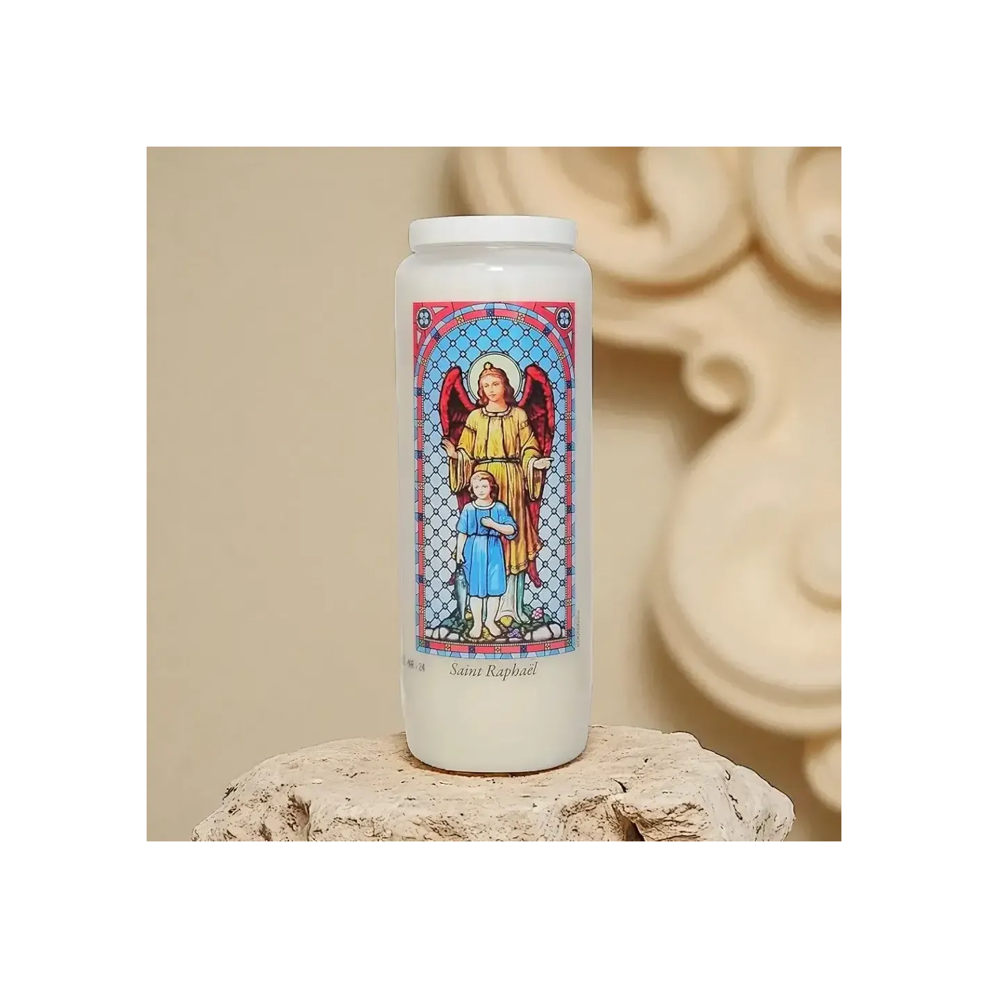 La neuvaine Saint Raphaël est une bougie de prière conçue pour accompagner une dévotion de neuf jours, invoquant la guidance et la guérison de l'archange Raphaël.