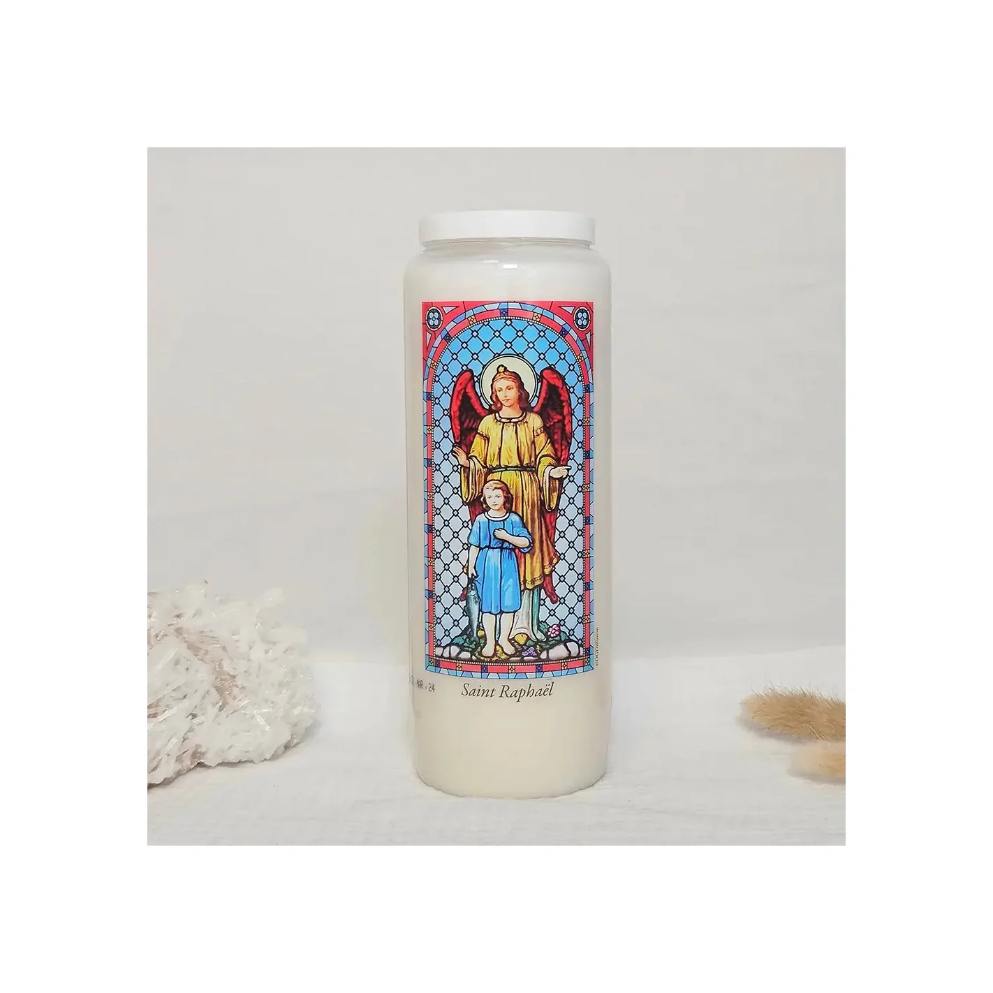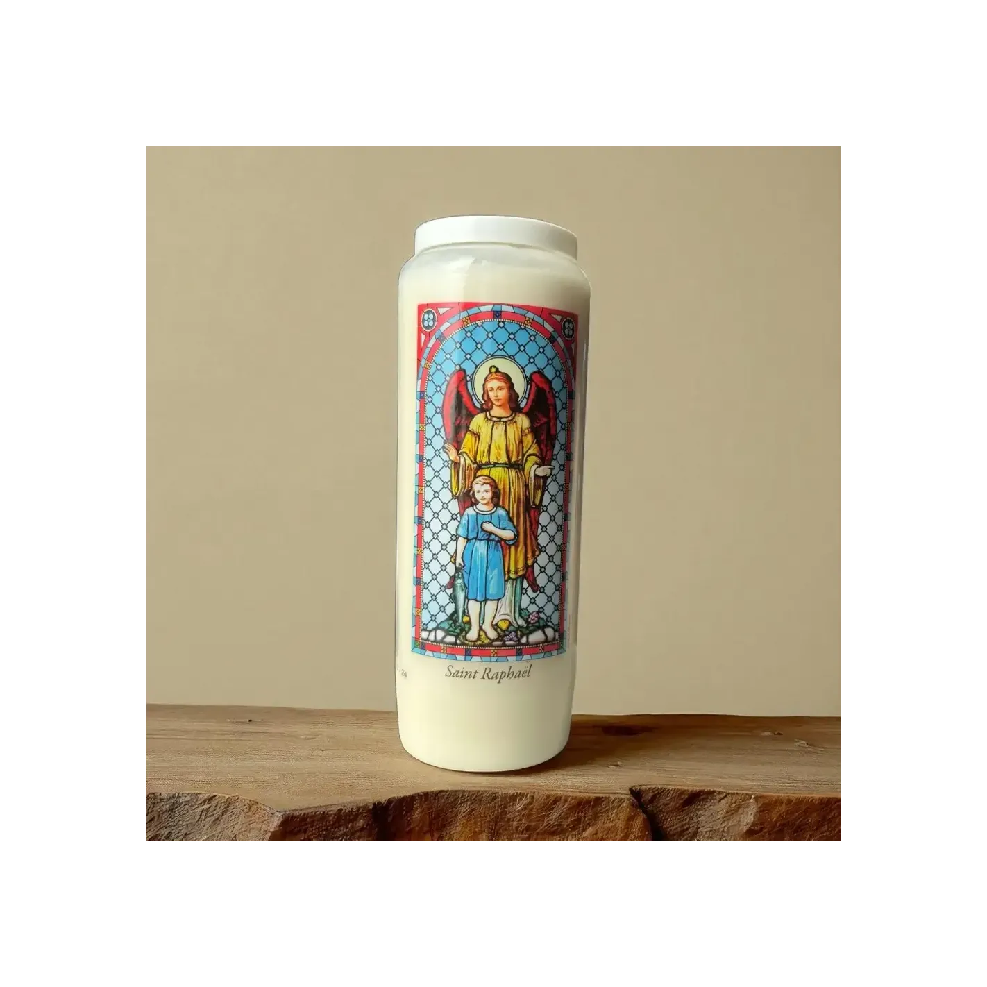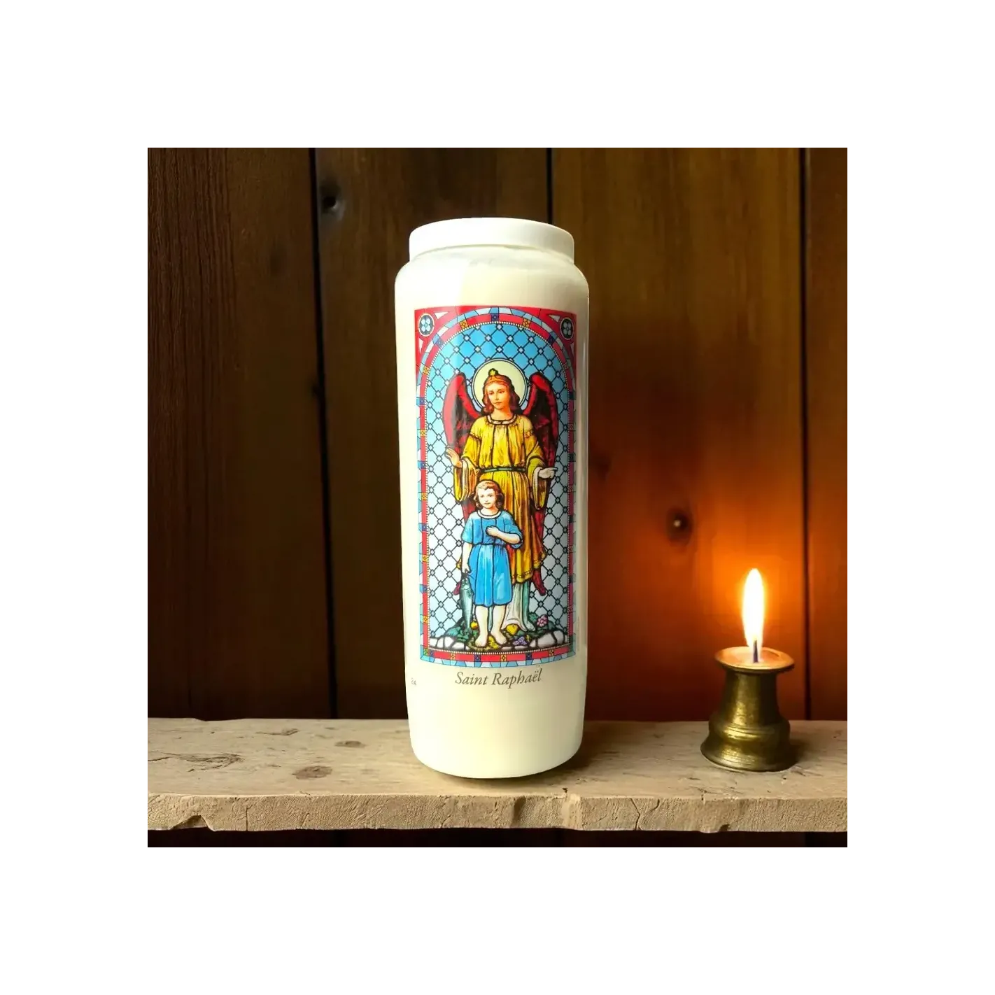 La neuvaine Saint Raphaël est une bougie de prière conçue pour accompagner une dévotion de neuf jours, invoquant la guidance et la guérison de l'archange Raphaël.