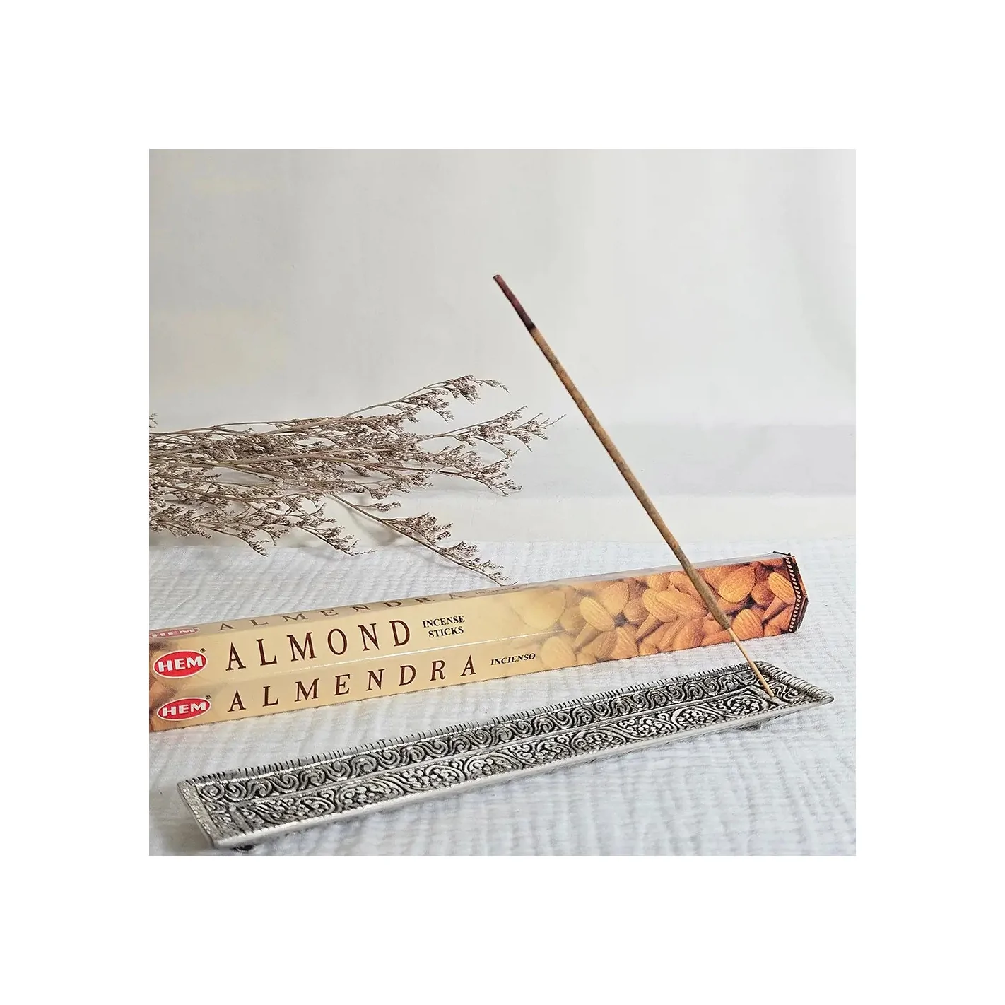 Découvrez l'encens amande HEM, un allié précieux pour vos moments de détente, de méditation et de bien-être.