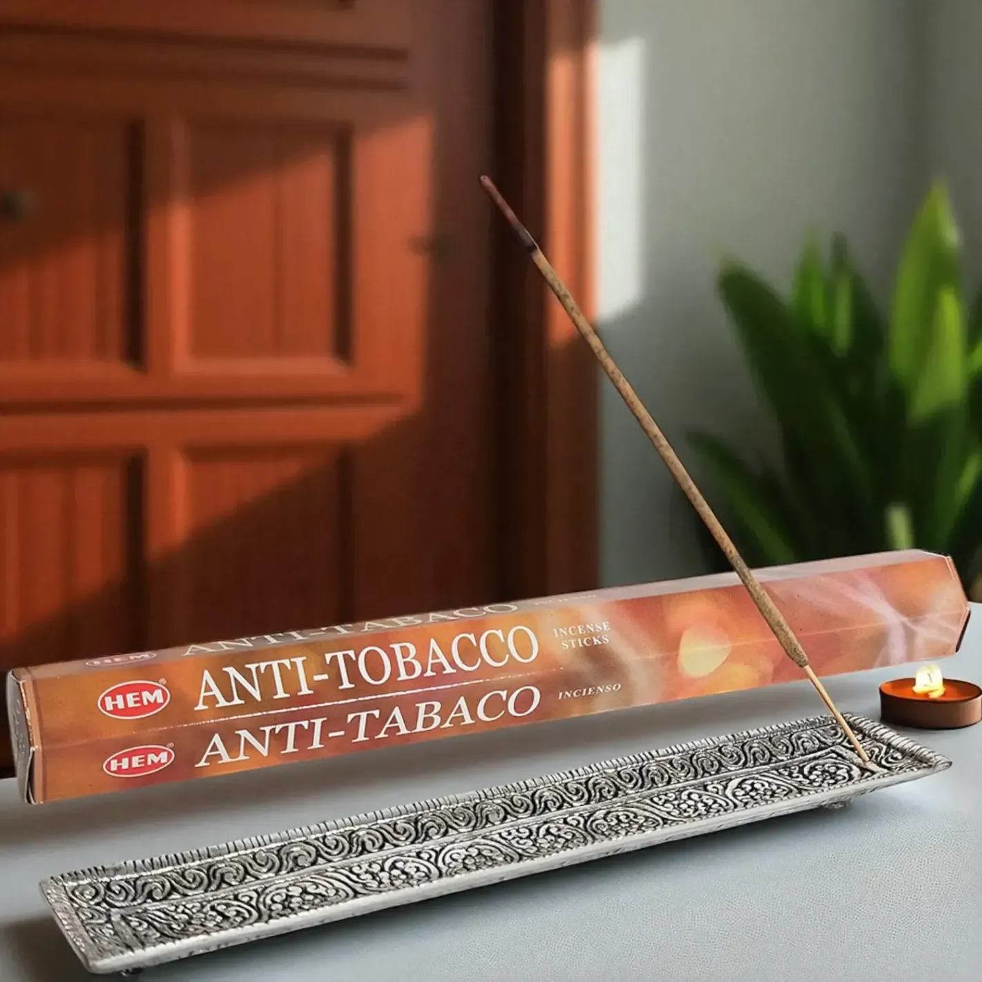 L’encens HEM Anti Tabac est spécialement formulé pour neutraliser les odeurs de fumée de cigarette ou de tabac froid. Son parfum frais et équilibré agit comme un purificateur d’air naturel, apportant une sensation de propreté immédiate. C’est un allié idéal pour garder une atmosphère saine dans les lieux de vie ou de travail, tout en diffusant une énergie plus légère et agréable.