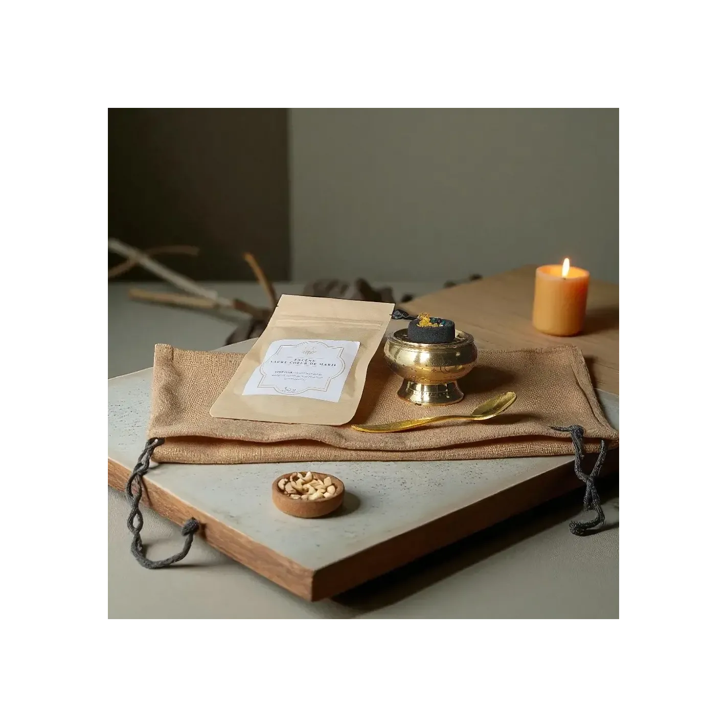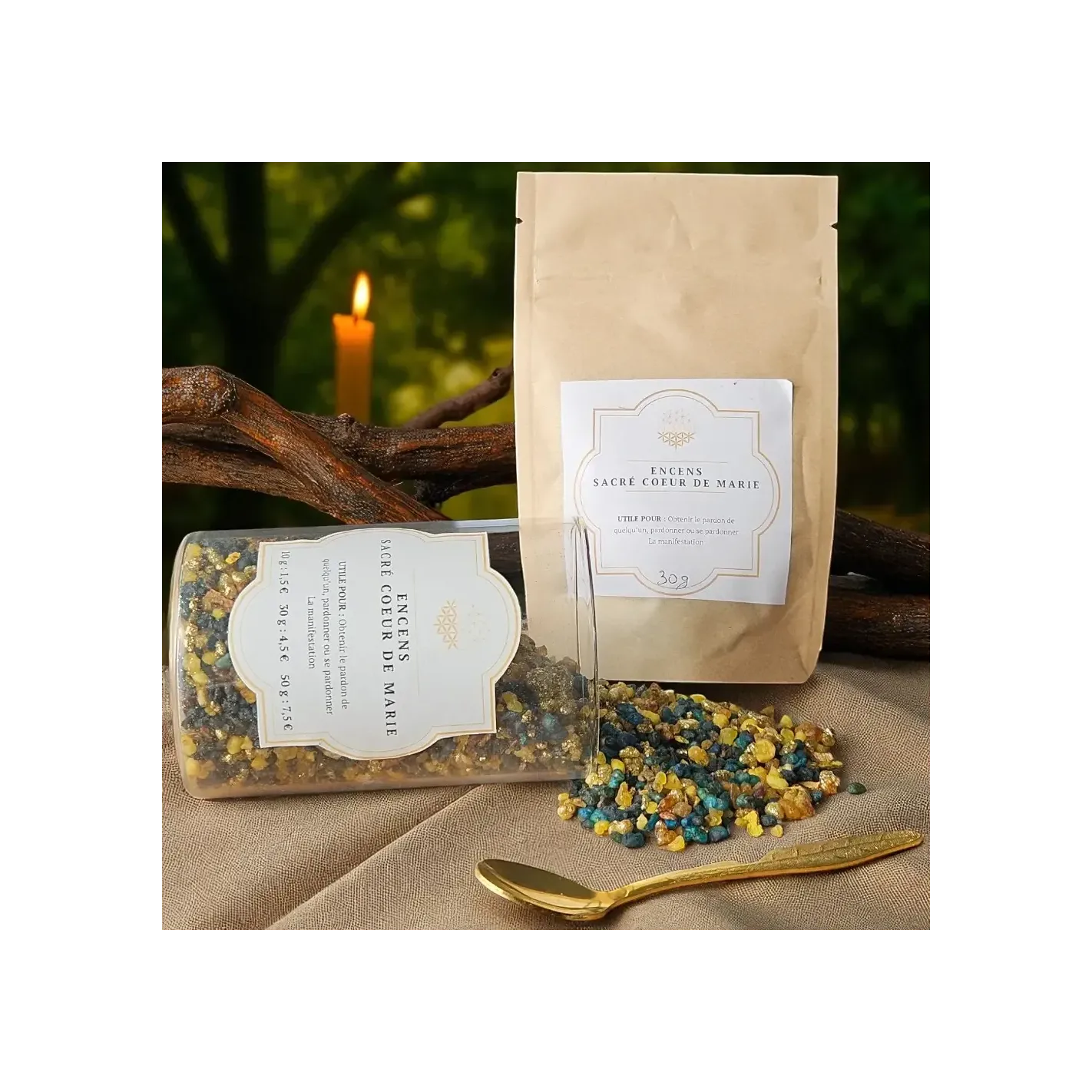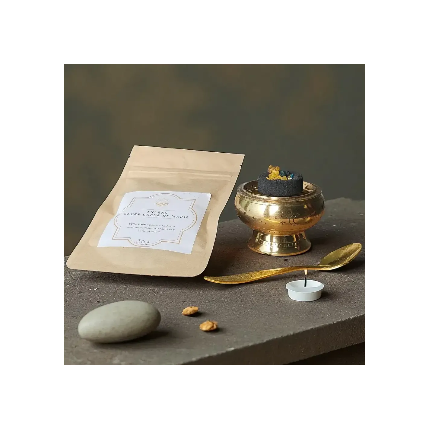 À brûler sur un charbon ardent dans un encensoir, cet encens sacré accompagne les temps de prière, les neuvaines, les rituels de guérison du cœur, et les méditations consacrées à Marie. Il crée une atmosphère empreinte de paix, de protection et d’amour pur.