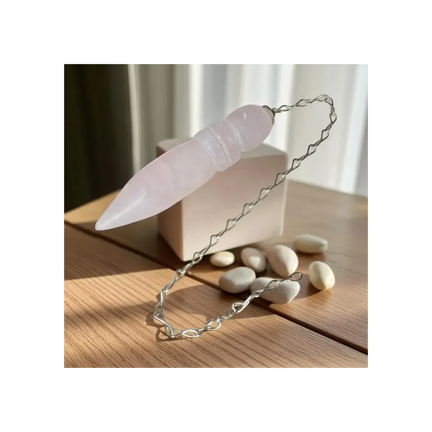 Laissez parler le cœur avec le Pendule Égyptien Quartz Rose, symbole d’amour sacré et de sagesse intérieure.