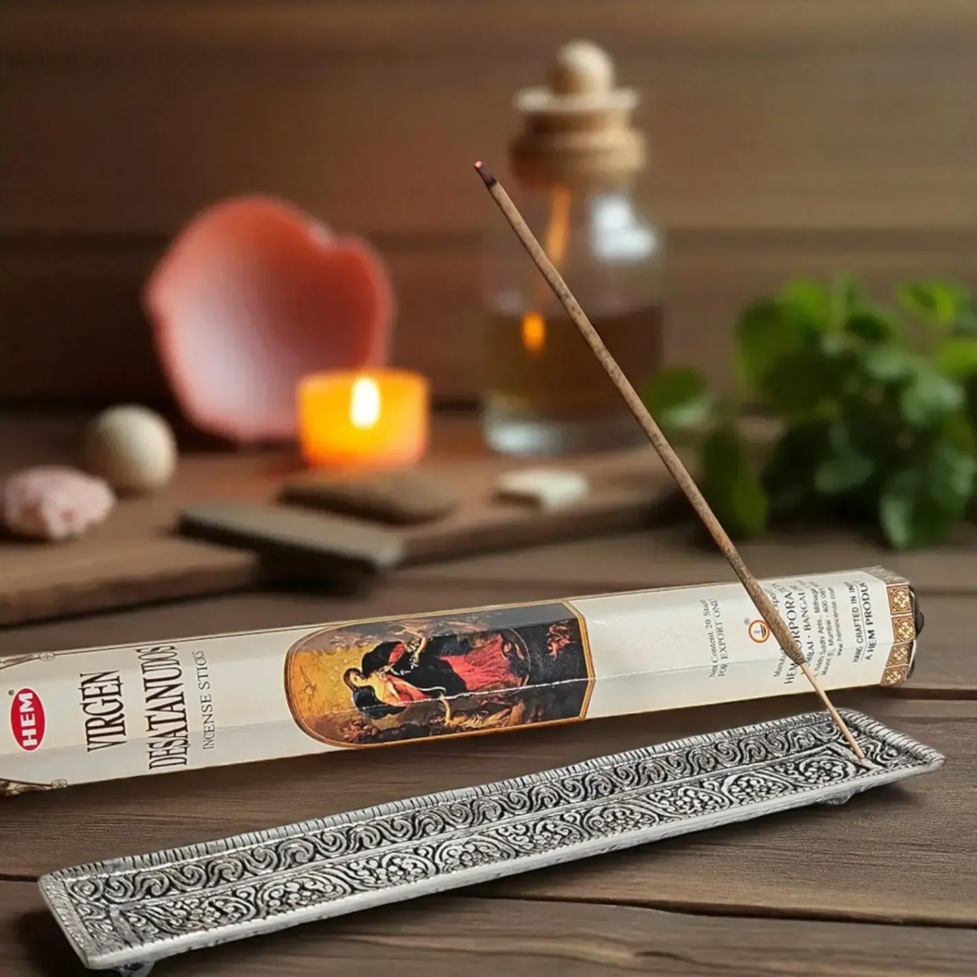 Allumez un bâton d’encens sur un brûle encens lors d’un moment de silence, de prière ou d’introspection. Formulez une intention ou une demande à Marie, en visualisant les nœuds de votre vie se défaire un à un. Laissez la fumée purifier l’espace et porter votre appel vers les plans subtils. Il peut être utilisé en accompagnement de rituels de libération émotionnelle, de soins énergétiques ou tout simplement pour instaurer une atmosphère paisible et sacrée dans votre intérieur. Associez-le à une bougie blanche, un chapelet ou une image de la Vierge pour renforcer votre rituel.