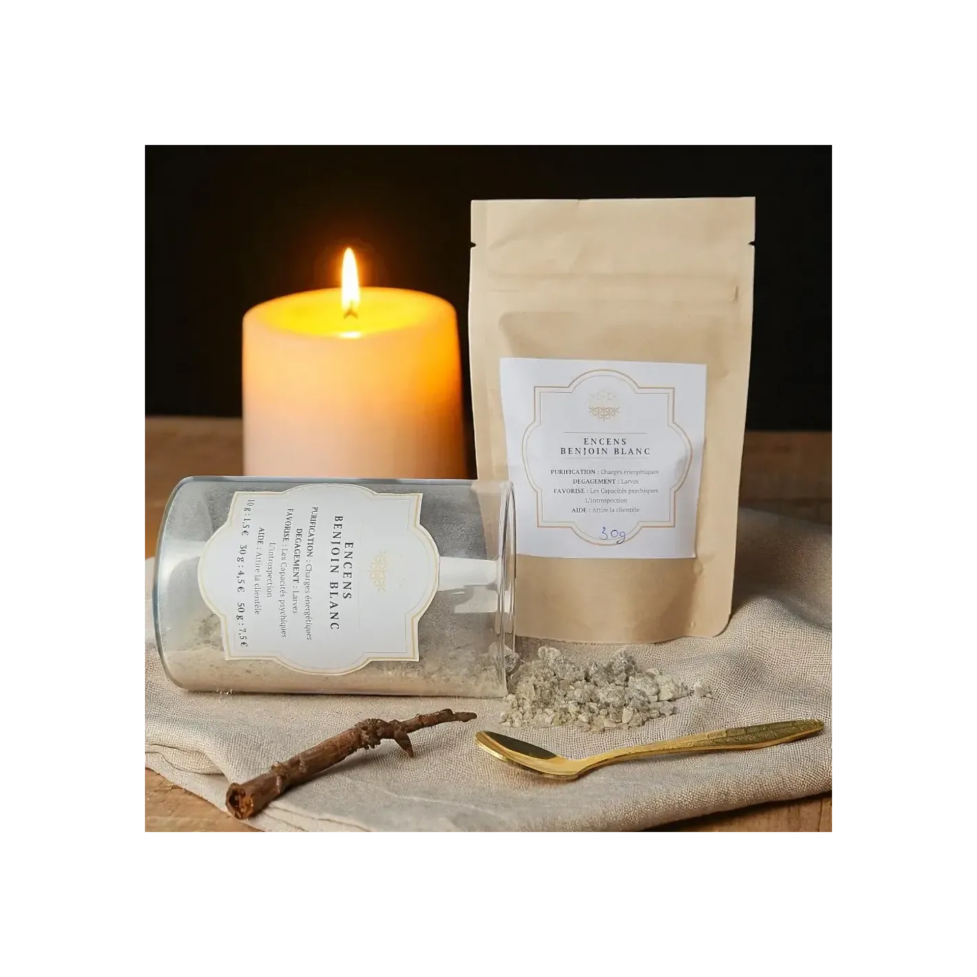•Purification énergétique : Le Benjoin Blanc est reconnu pour nettoyer les lieux des énergies négatives et rétablir une atmosphère paisible.