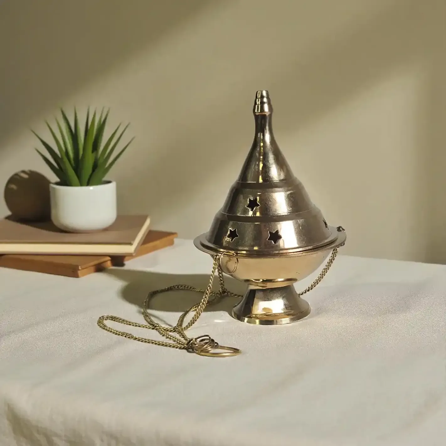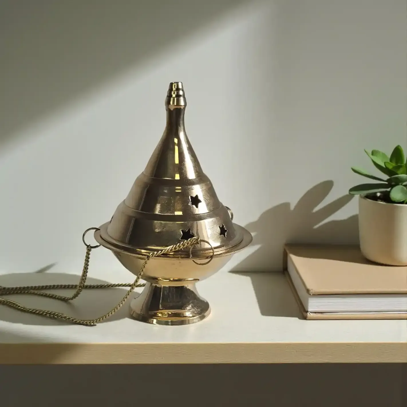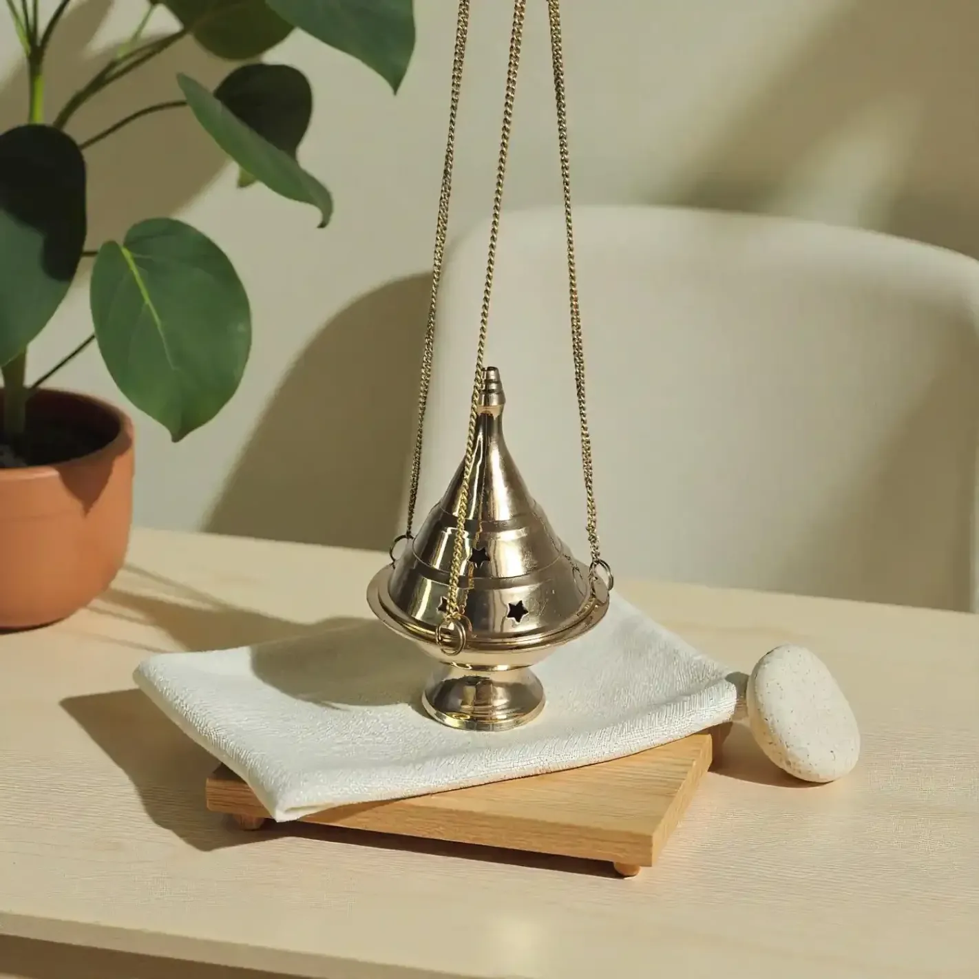 Un encensoir traditionnel en laiton, pour sanctifier l’espace et accompagner les élévations de l’âme.